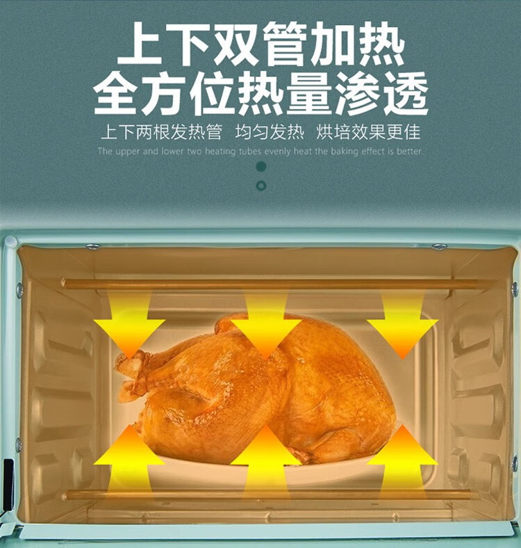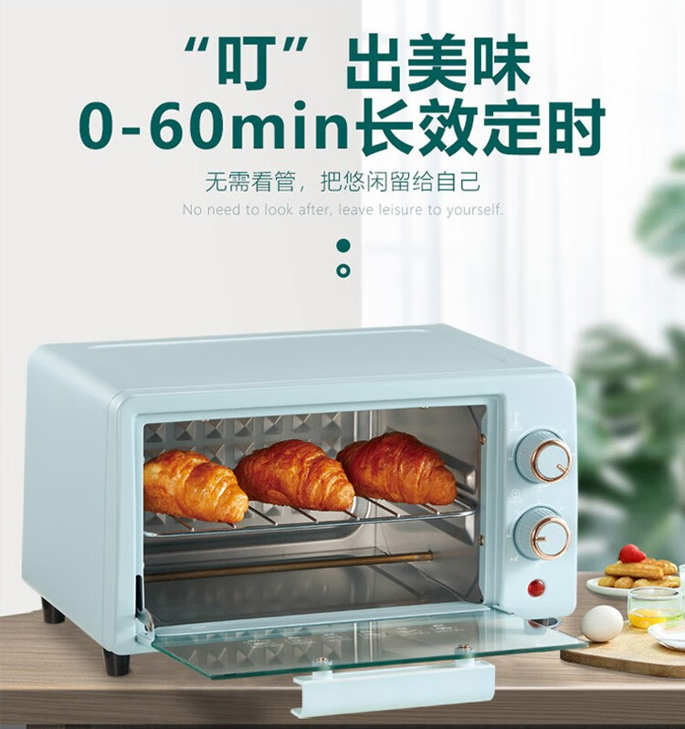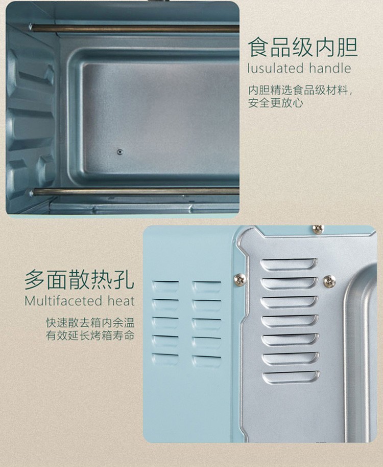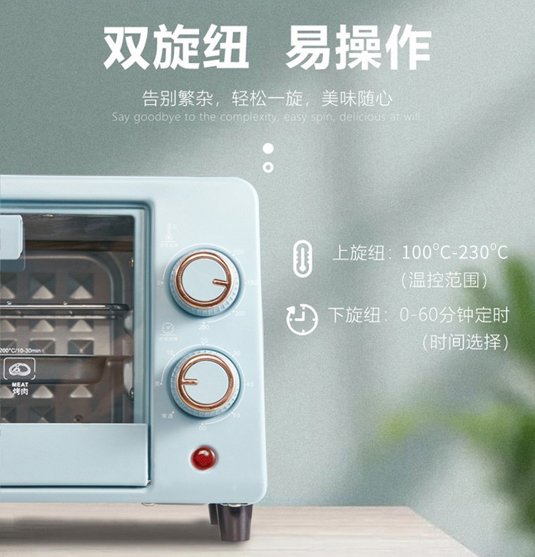 上下S型不锈钢发热管,经久耐用 温度调控范围100-230℃,满足家用需求 双旋钮操作,简单易懂 30分钟定时器