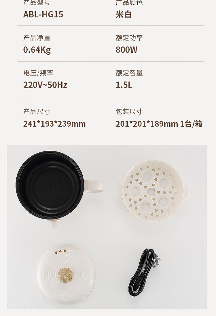 商品名称:艾贝丽电火锅(带蒸笼)ABL-HG15 6972149931924 偏远另加运费