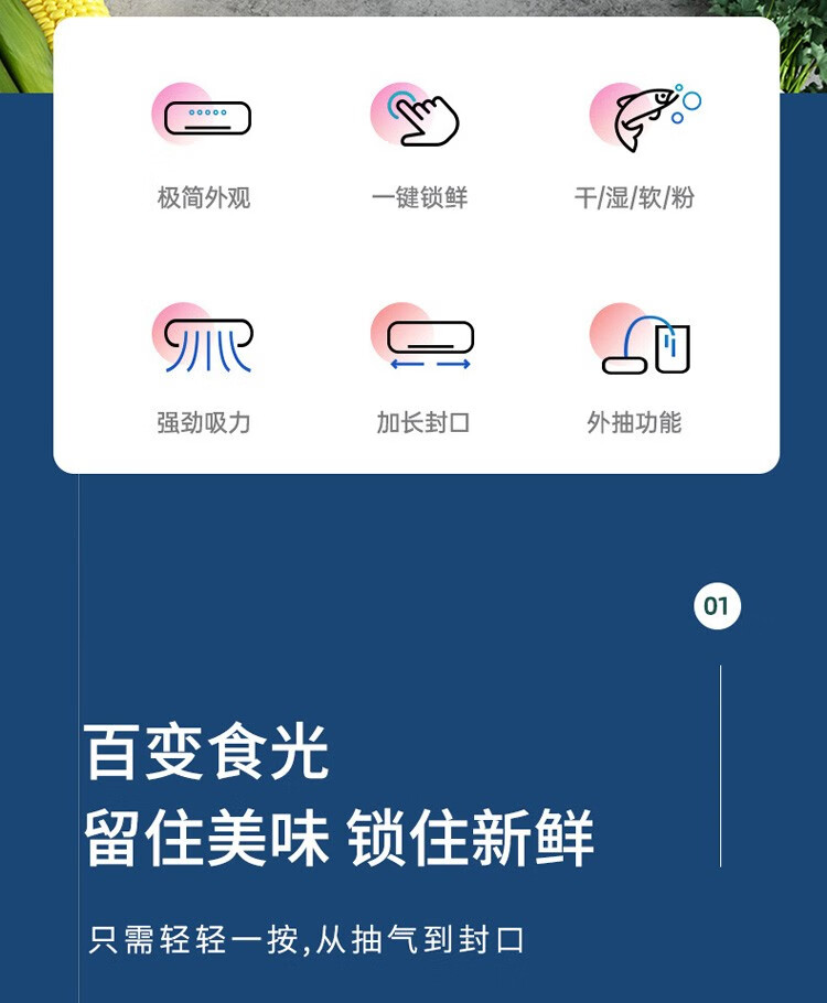 一键式真空封口机 大吸力,真空不费劲 多种封口,保鲜模式