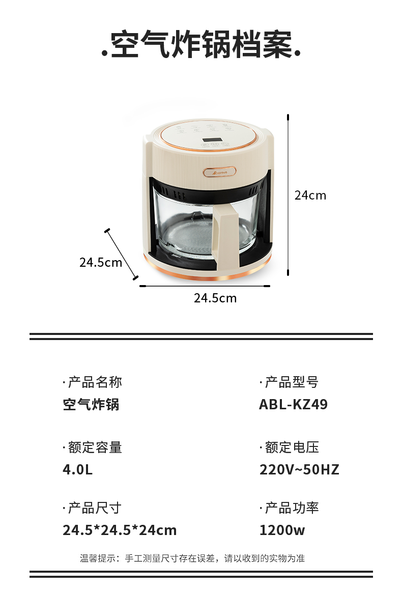 商品名称:艾贝丽空气炸锅 4L ABL-KZ49 6972149933102 偏远另加运费