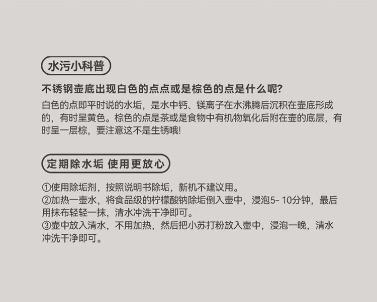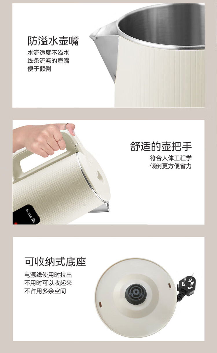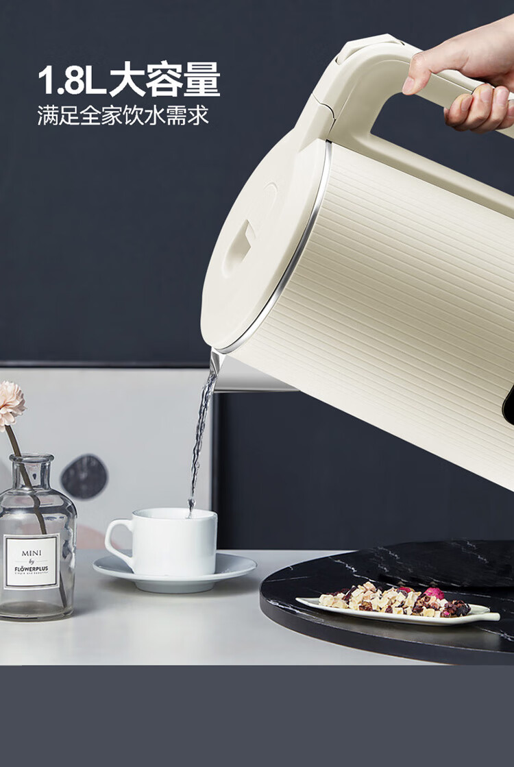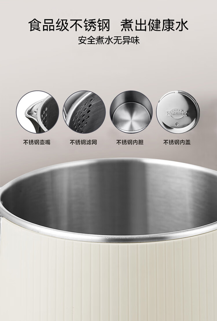 \\\"顶部一键开盖 食品级不锈钢内胆,健康饮水 双层保温防烫,食品级PP料,经久耐用,无异味 下斜式壶嘴,倒水方便不费力
