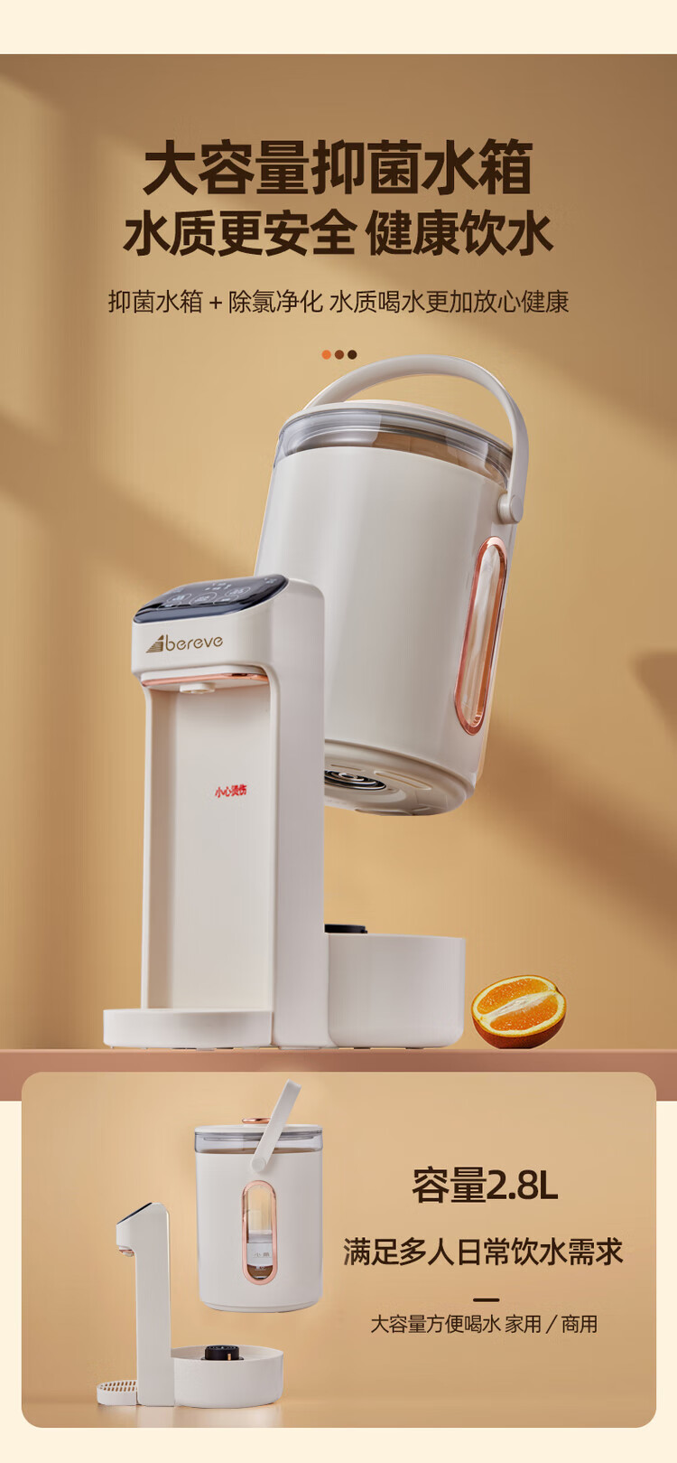 \\\"2.8L大容量方便喝水,家用/商用都可 抑菌水箱+除氯净化水质喝水更加放心 安全童锁,家庭放心用 12小时长效保温
