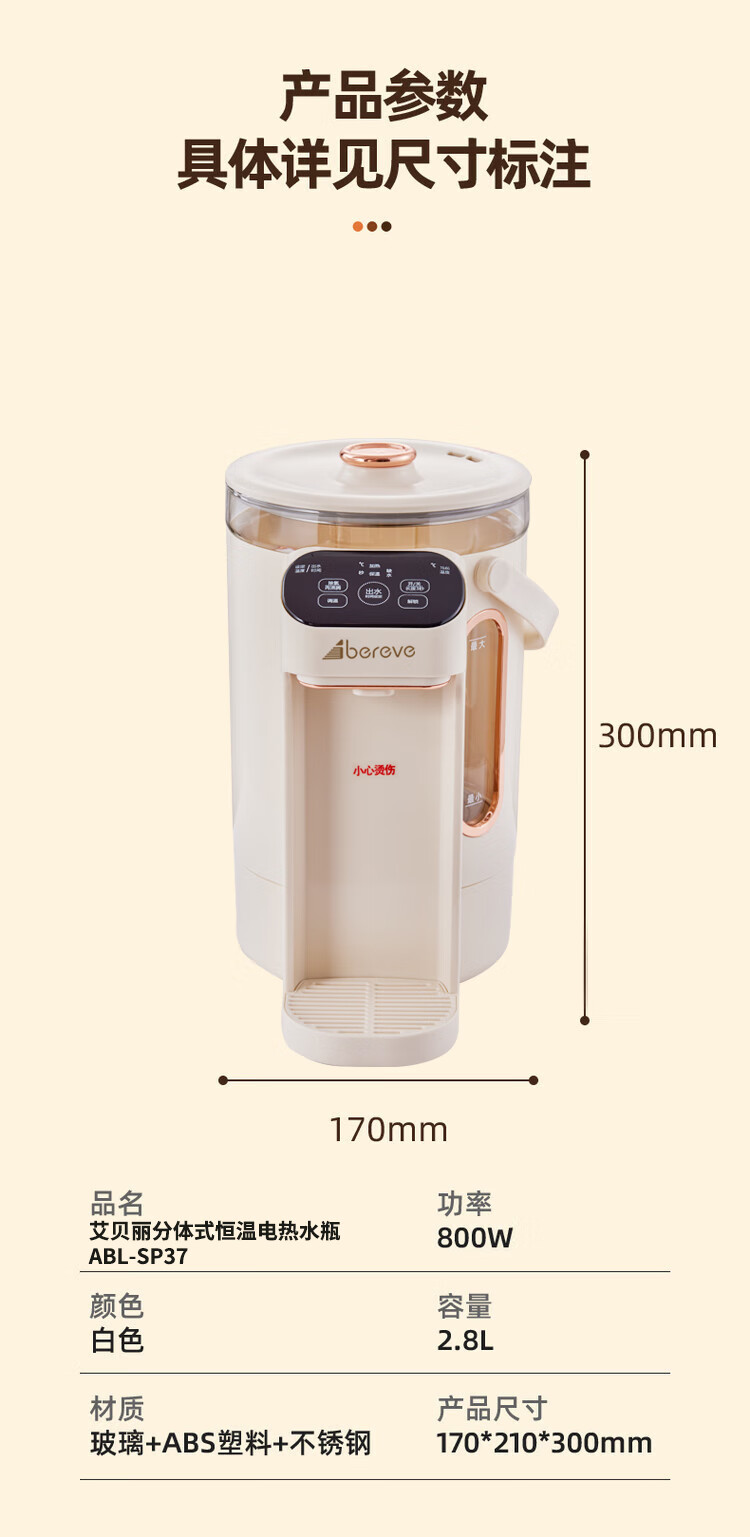 商品名称:艾贝丽分体式恒温电热水瓶ABL-SP37 6972149933591 偏远另加运费
