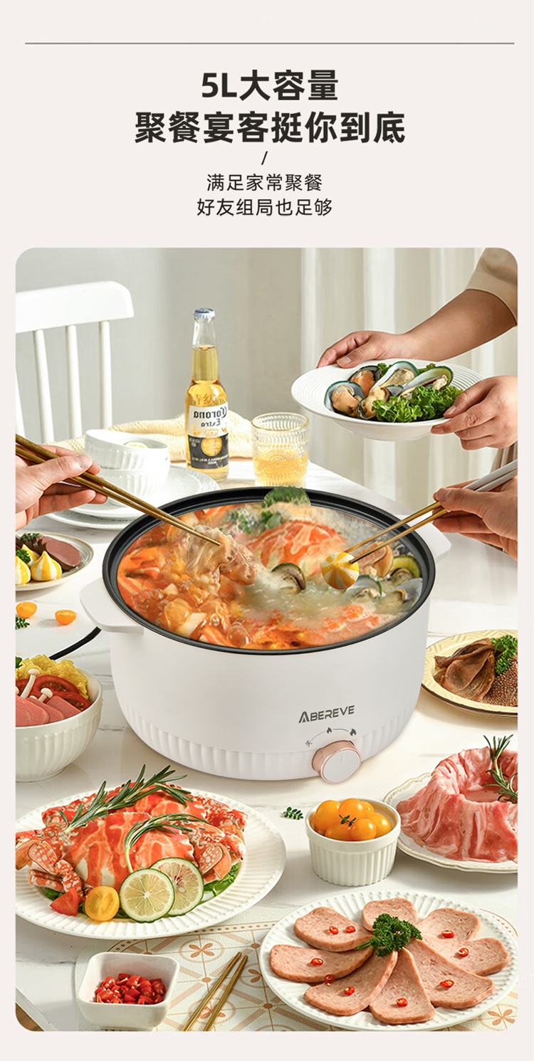 艾贝丽多功能电火锅 5L ABL-HG53 6972149933645 偏远另加运费