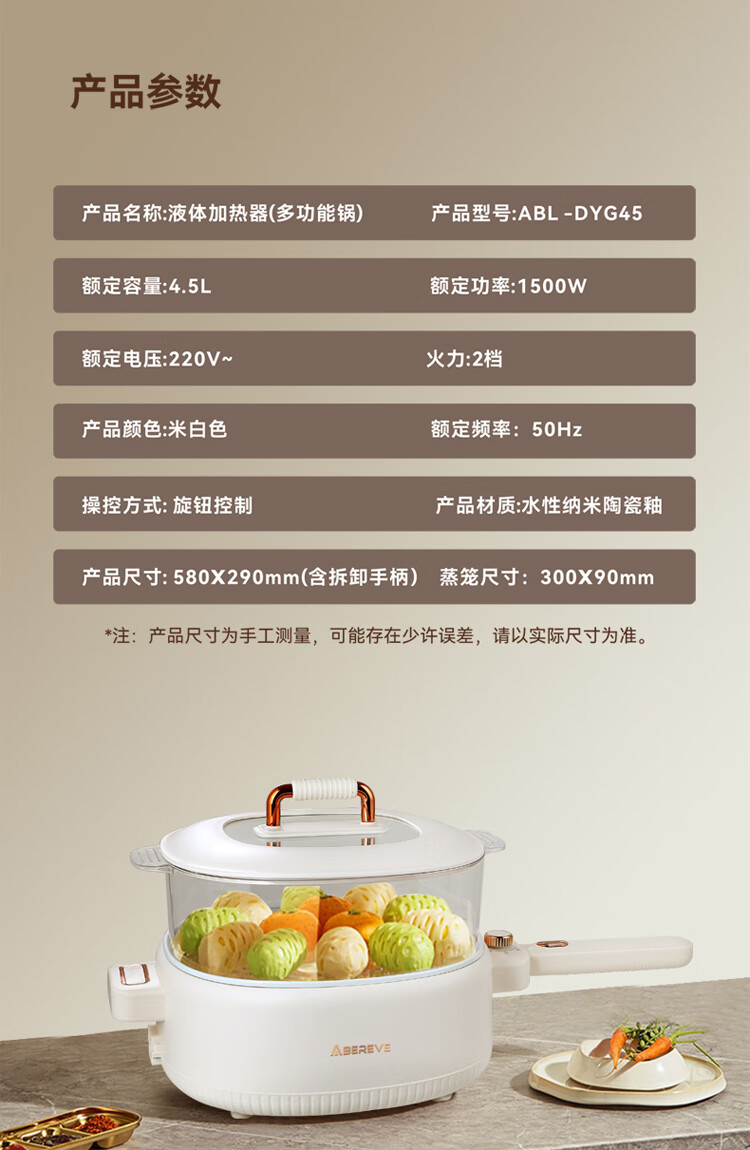 商品名称:艾贝丽多功能锅 ABL-DYG45 6972149933812 偏远另加运费