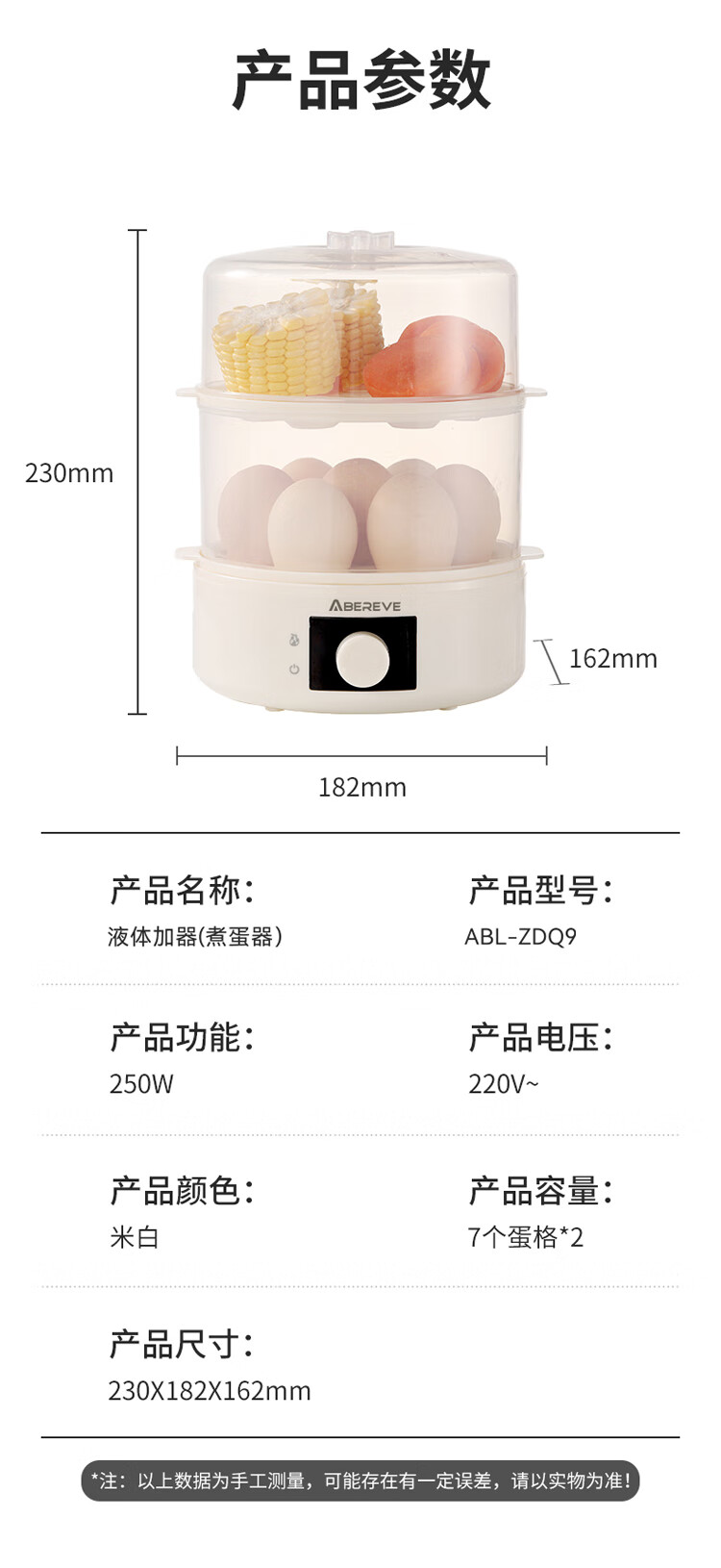 商品名称:艾贝丽双层煮蛋器ABL-ZDQ9 6972149933928 偏远另加运费