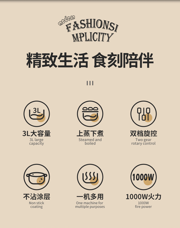 商品名称:艾贝丽多功能电火锅 3L ABL-B31 6972149933942 偏远另加运费
