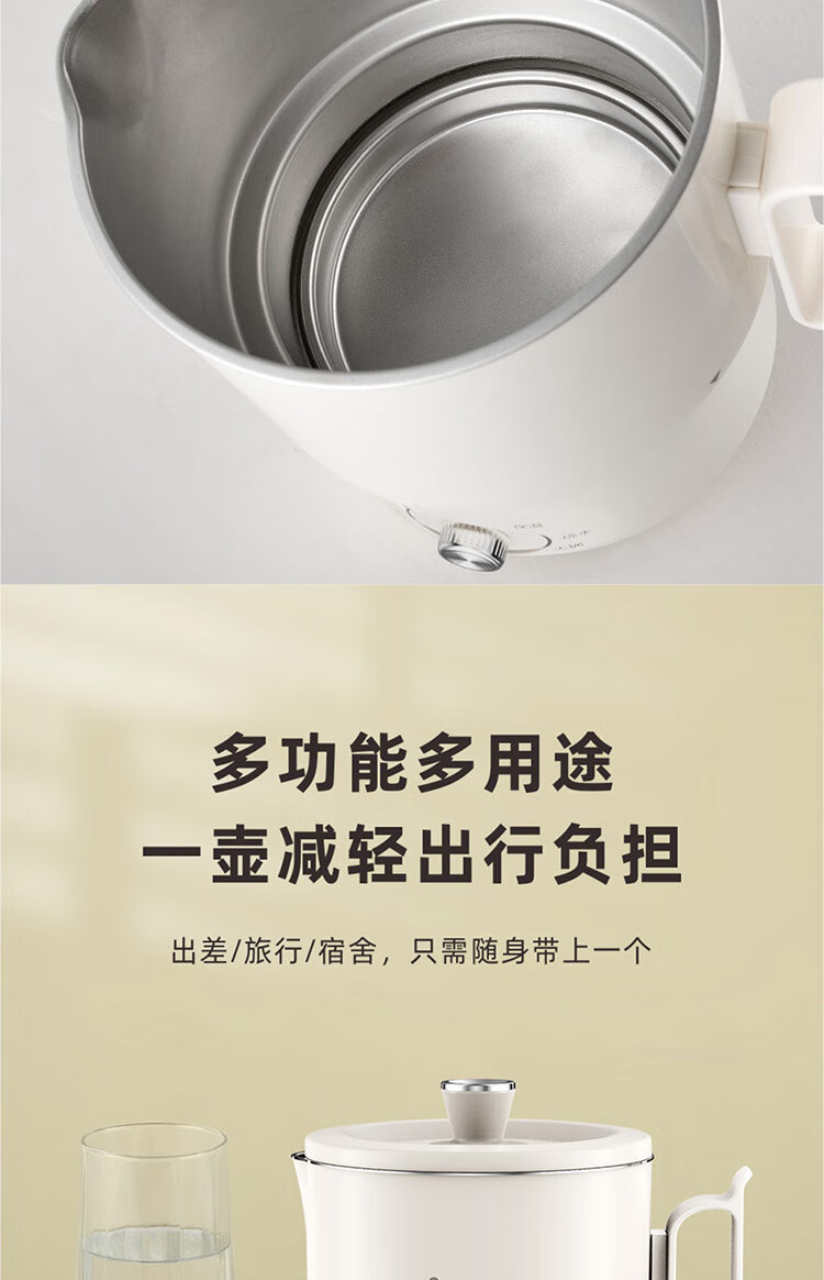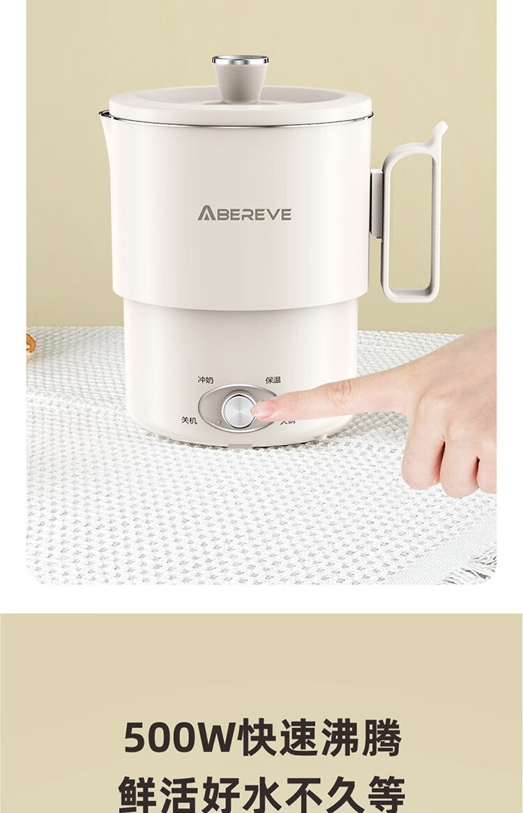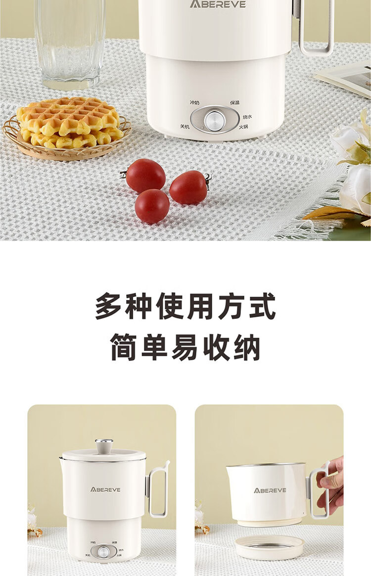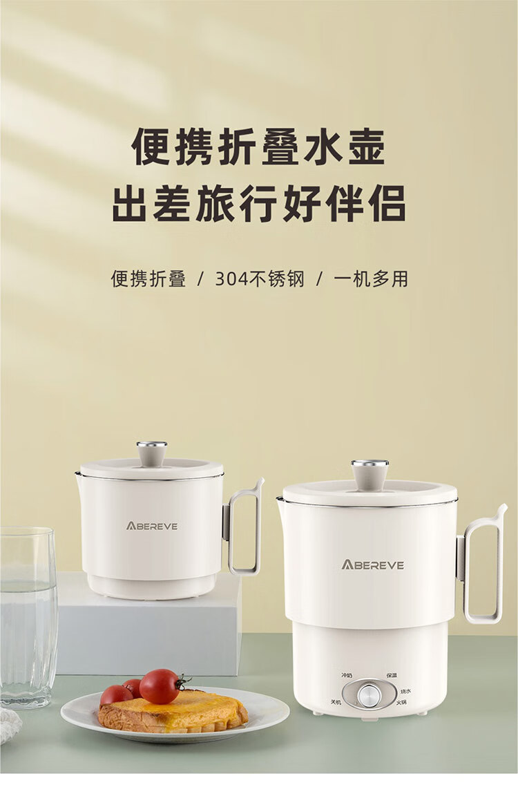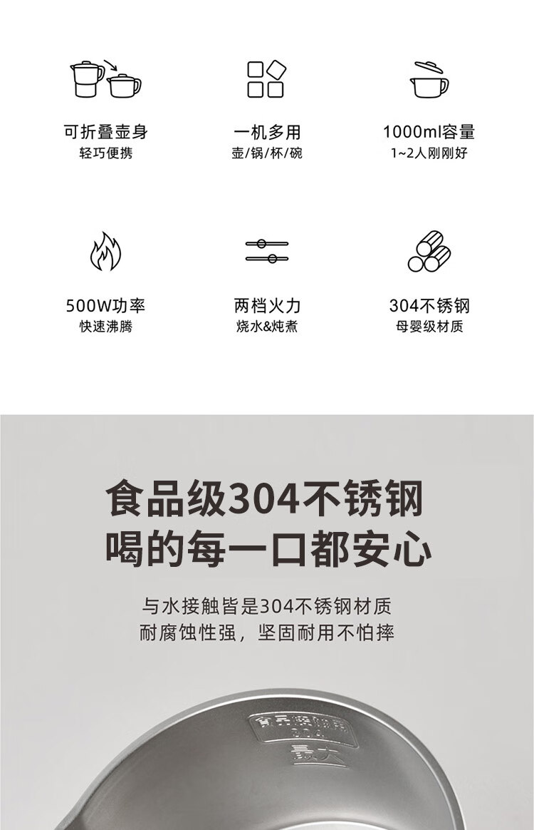 可折叠壶身,轻巧便携,出差/旅行/宿舍随身带 一机多用,可当壶/碗/杯/锅 1000ml容量刚刚好,适合1-2人使用