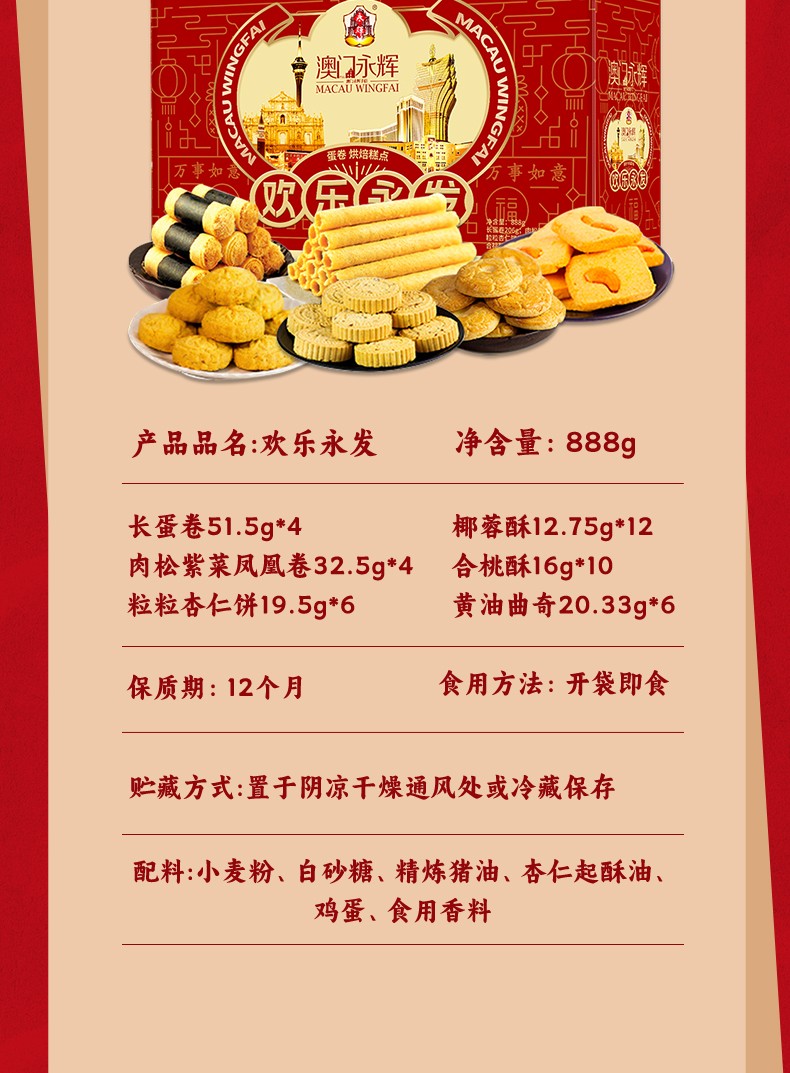商品名称:澳门永辉饼干欢乐永发礼盒888g 9583415008102 偏远另加运费