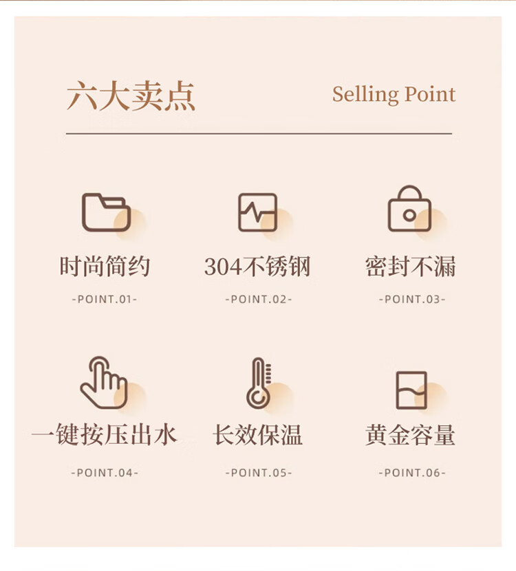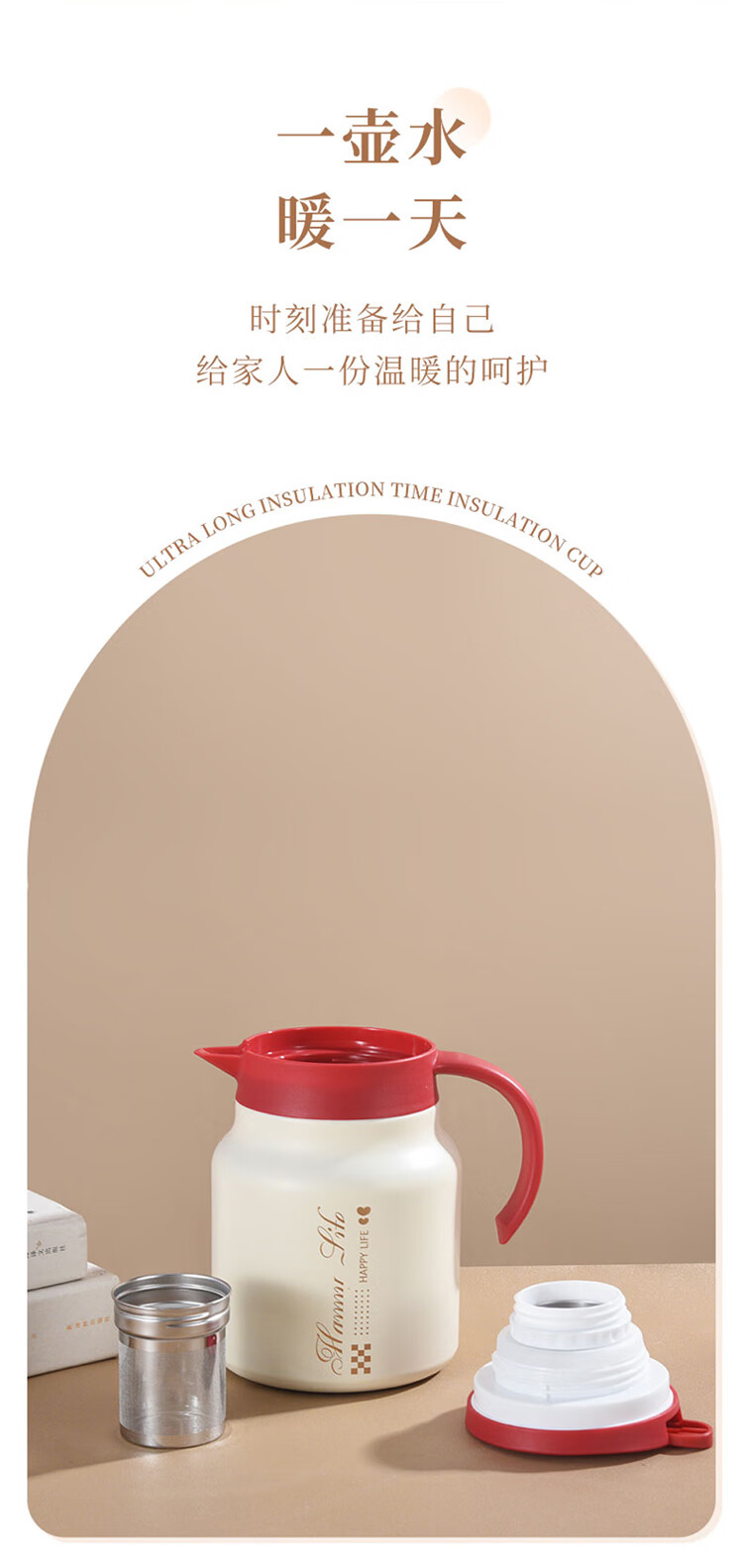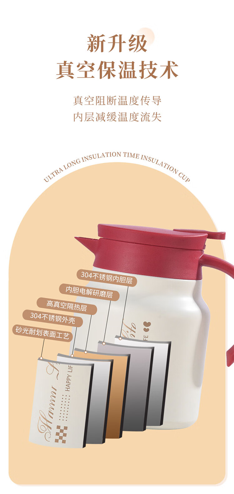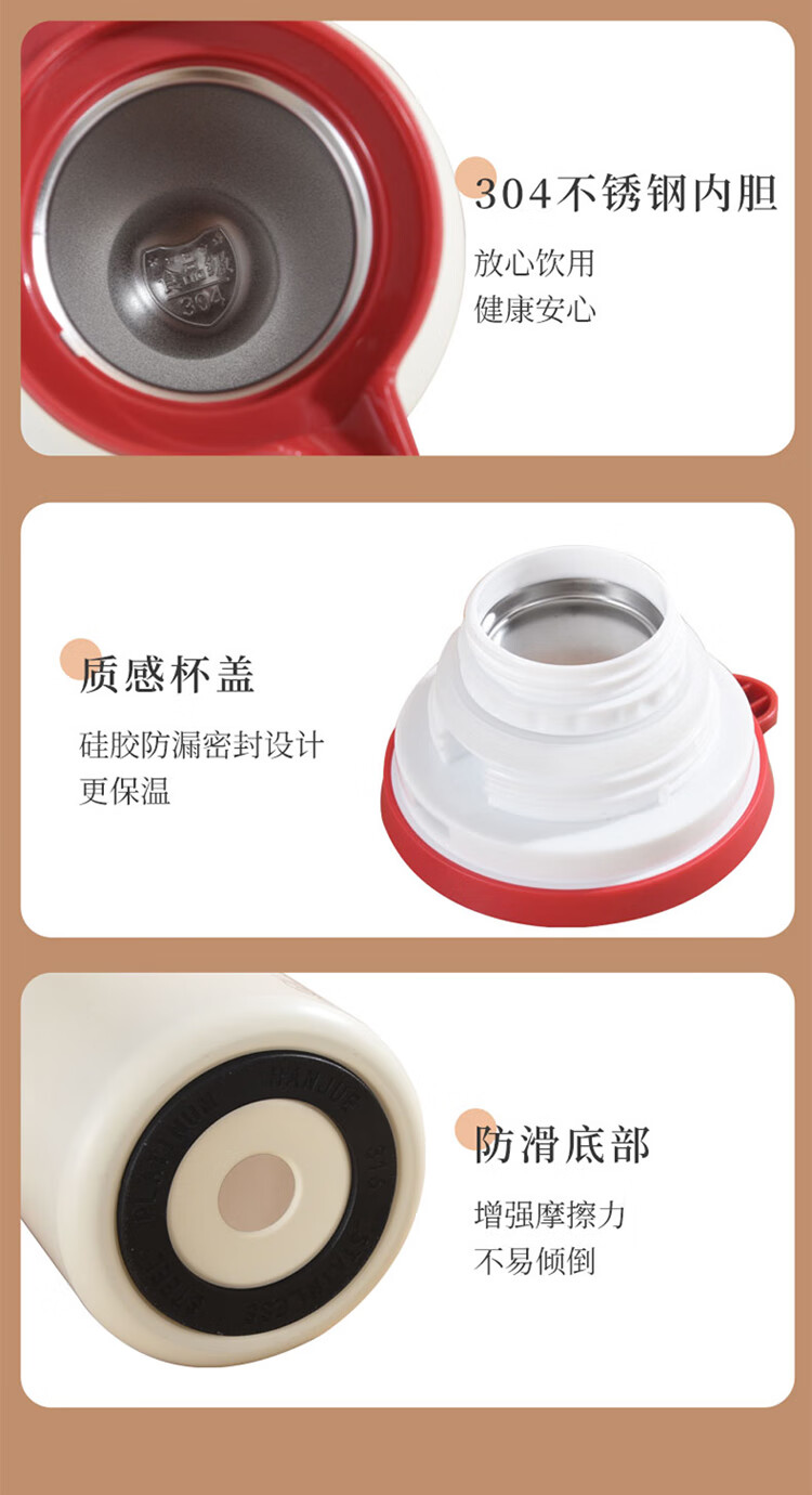 \"焖烧壶304不锈钢内胆,食品级硅胶材质,喝水更健康。 一键按压出水,单手可操作,省时省力。 可拆卸式茶仓,茶水分离