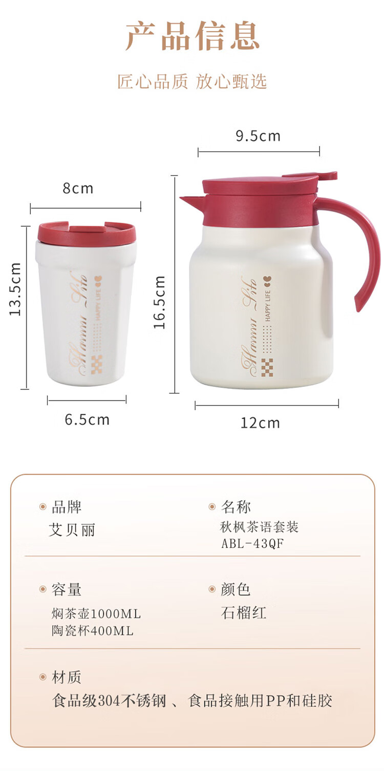 商品名称:艾贝丽秋枫茶语套装 ABL-43QF 燜茶壶+陶瓷杯 6972149934062 偏远另加运费