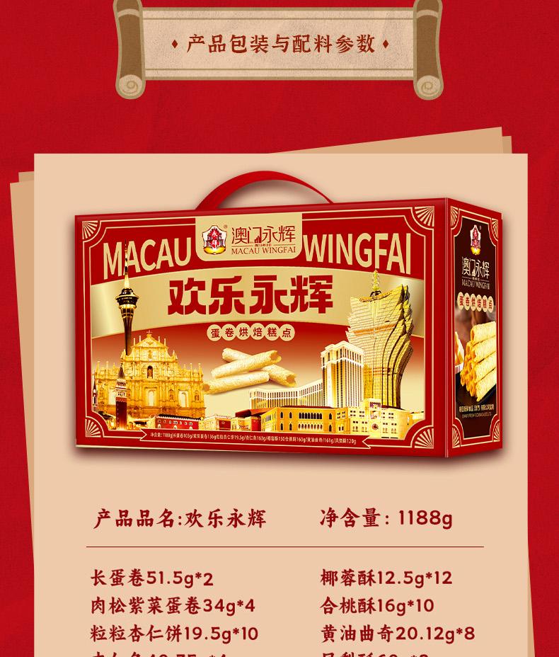 商品名称:澳门永辉欢乐永辉礼盒1188g 蛋卷 桃酥等糕点 9583415008119 偏远另加运费