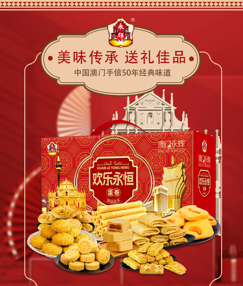 澳门永辉欢乐永恒礼盒1388g 蛋卷 桃酥等糕点 9583415008126 偏远另加运费