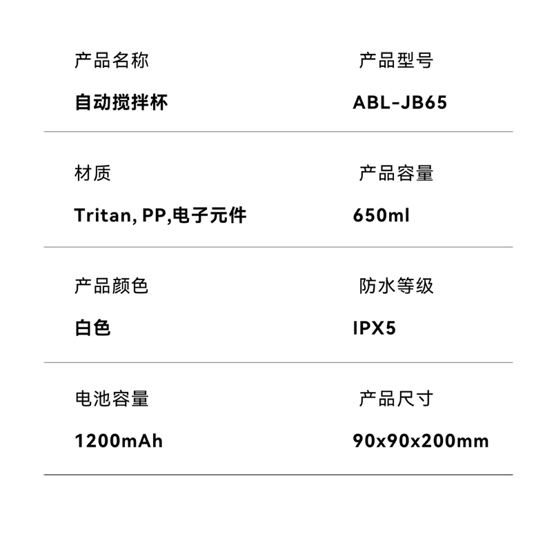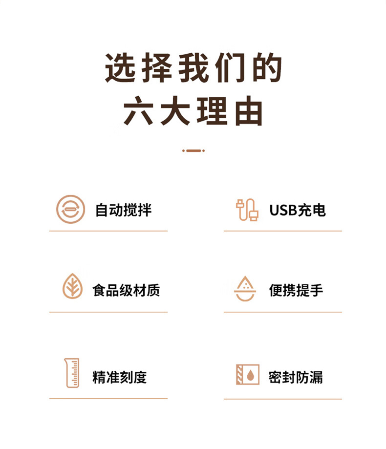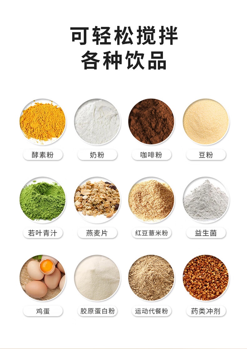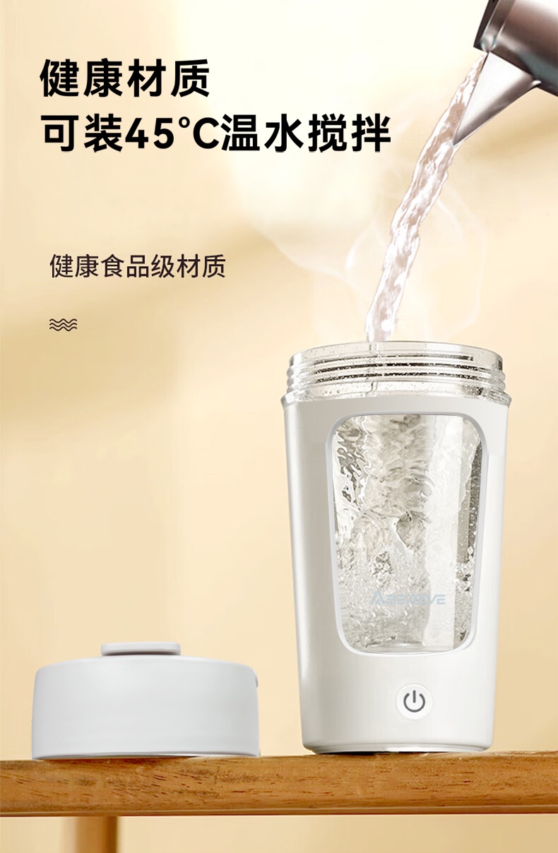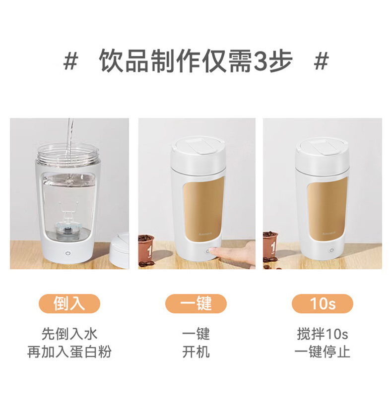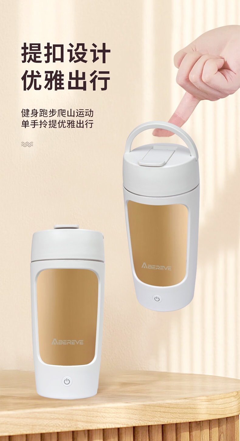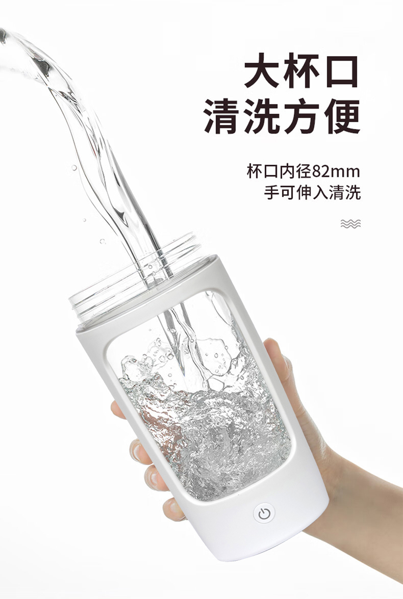 \"告别手动摇晃,电动搅拌,持久续航 Tritan材质,安全健康更耐摔 拎手可90°自由活动,方便携带和收纳 宽大杯口