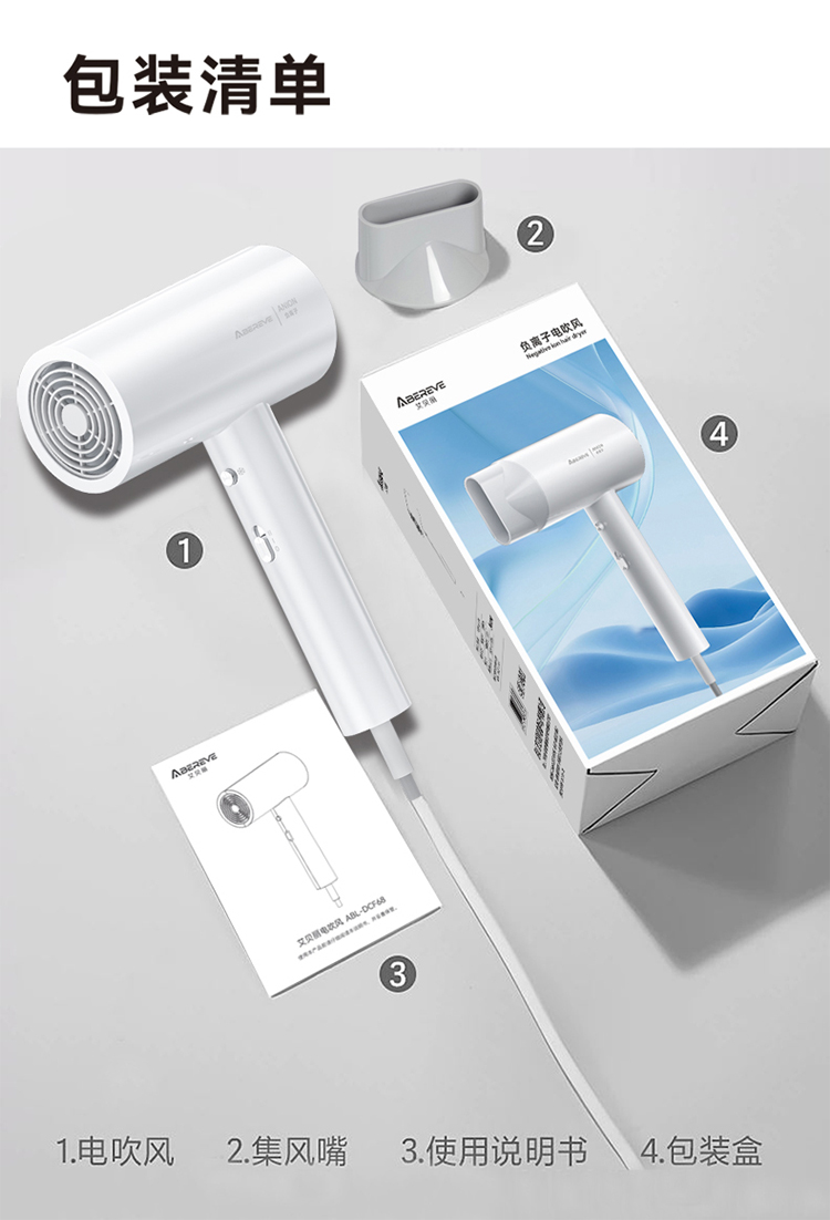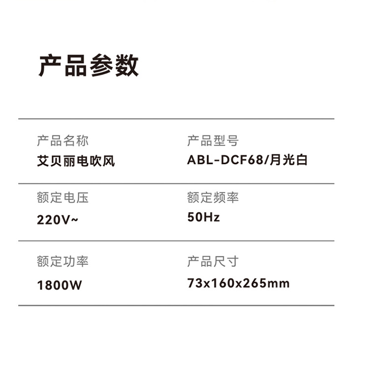 商品名称:艾贝丽月光白电吹风 月光白 ABL-DCF68 6972149934307 偏远另加运费