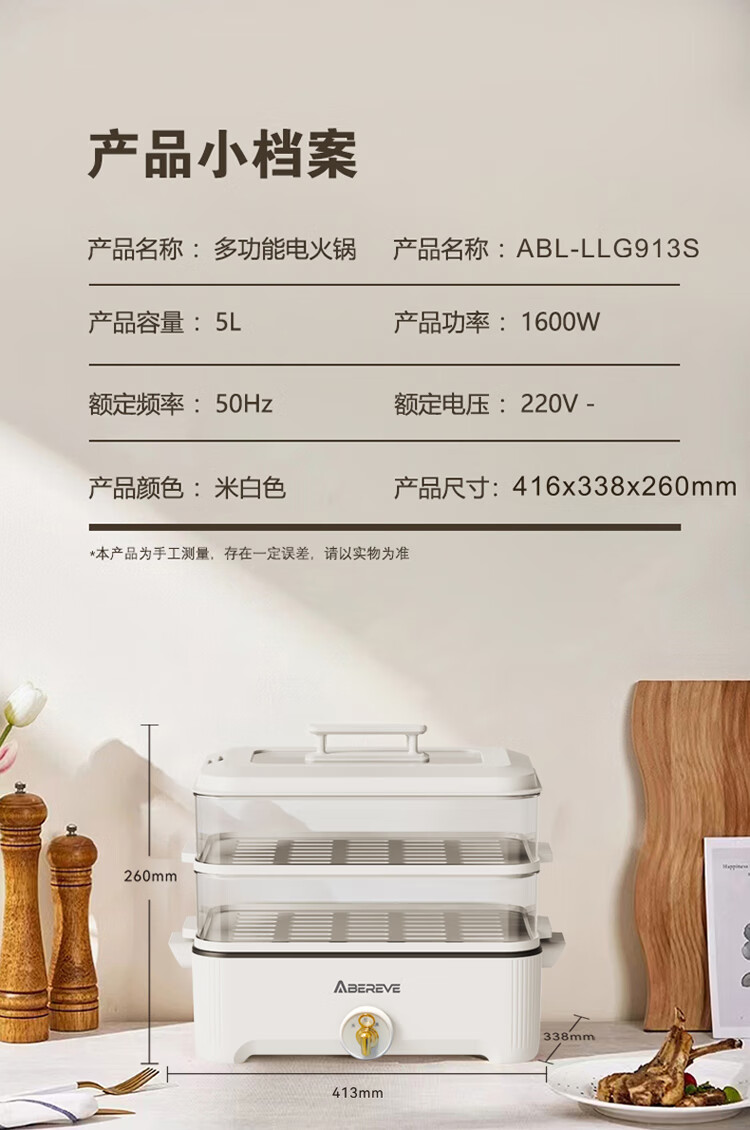 艾贝丽多功能电火锅 5L ABL-LLG913S 6972149934376 偏远另加运费