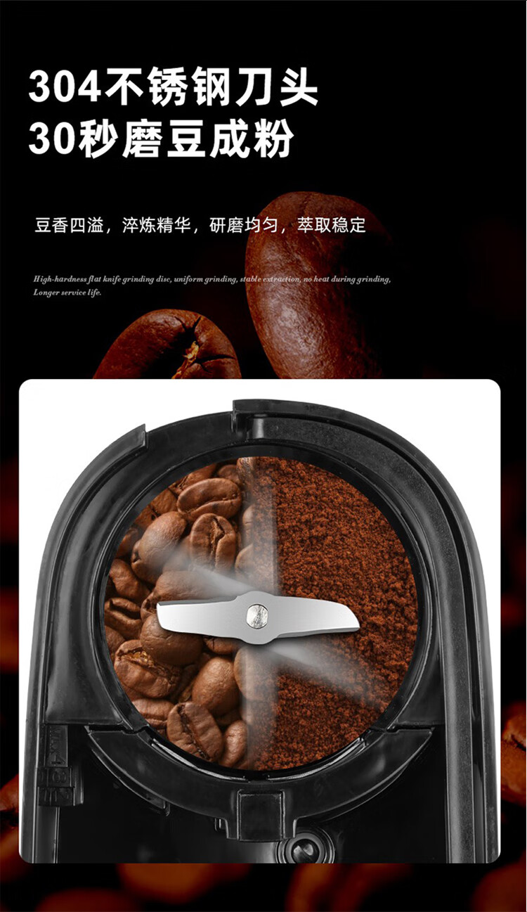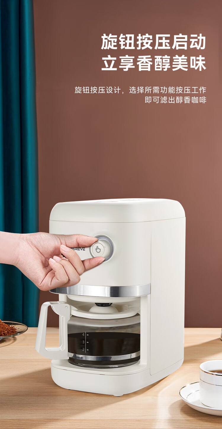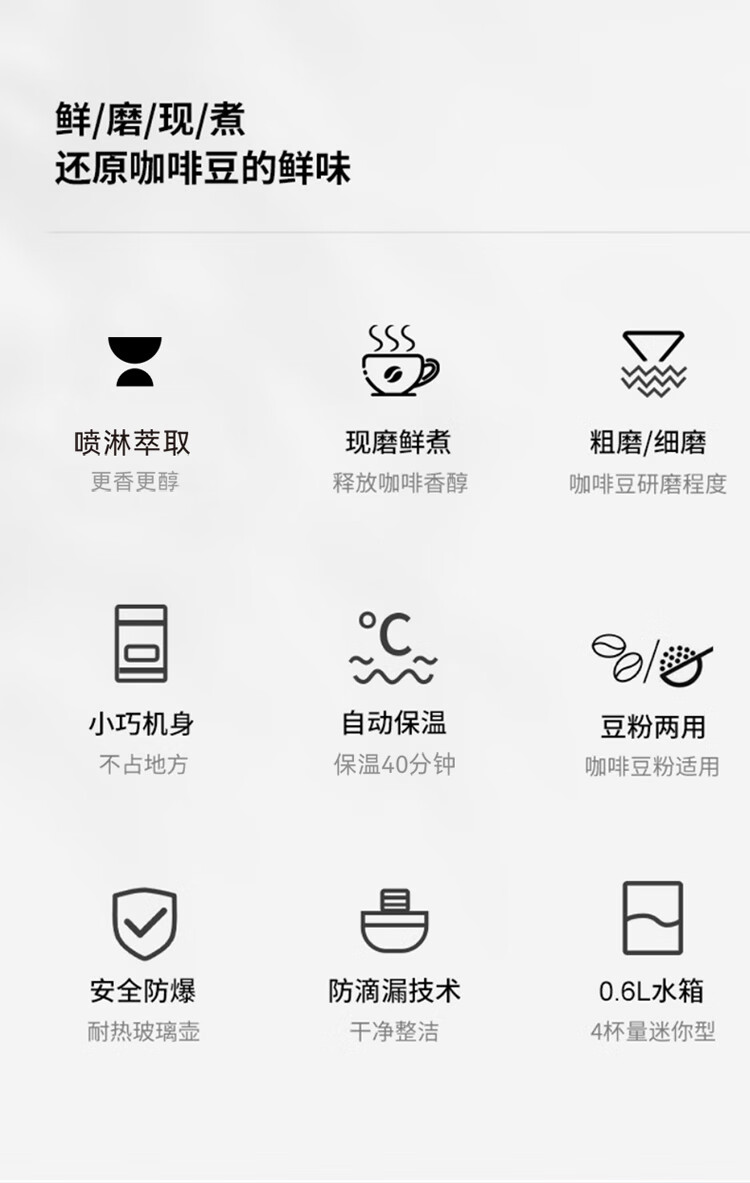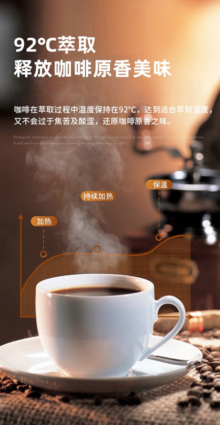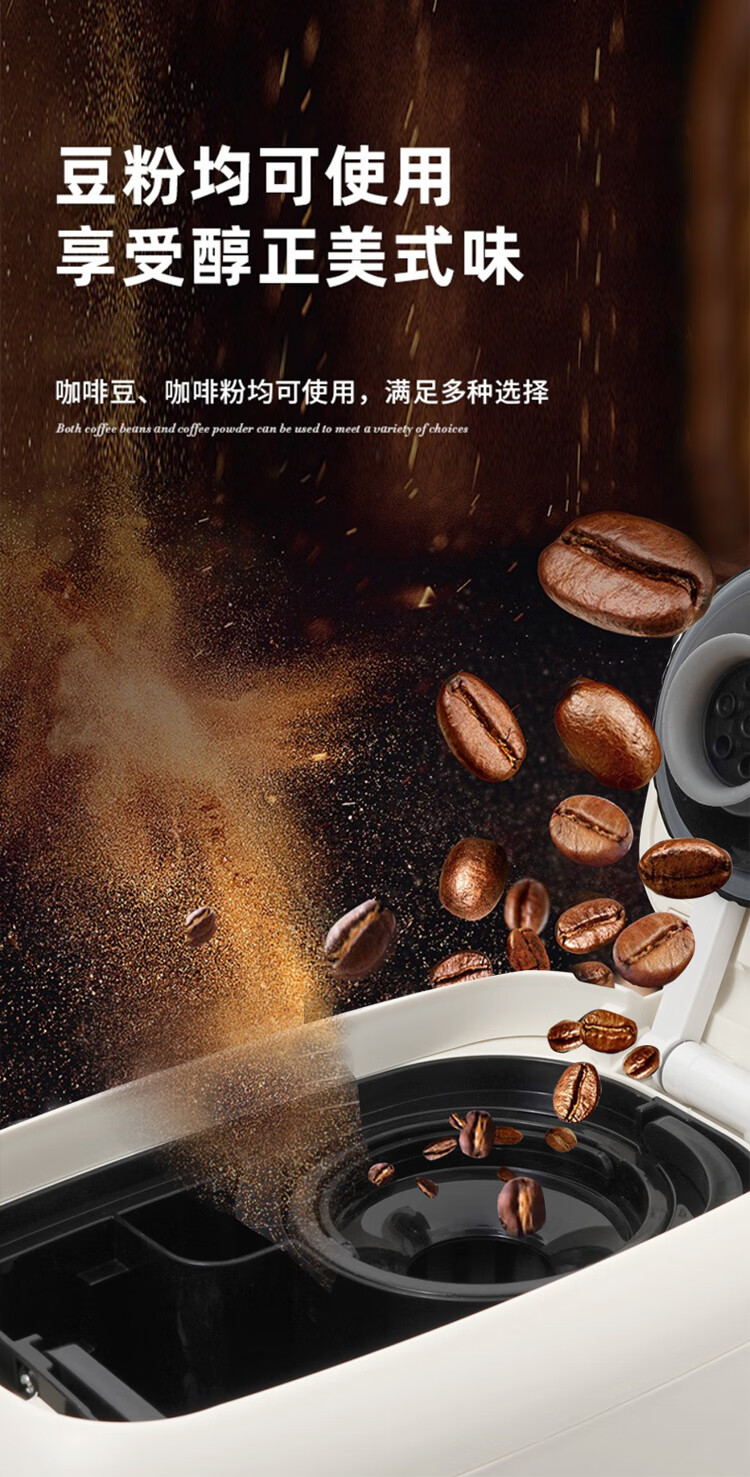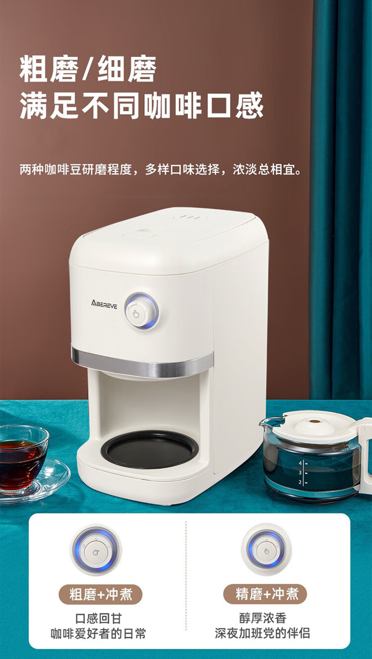 \"全自动磨豆咖啡机 现磨鲜煮 旋钮按压启动 立享美味 粗磨/细磨 满足不同咖啡口感,浓淡总相宜 40分钟自动保温