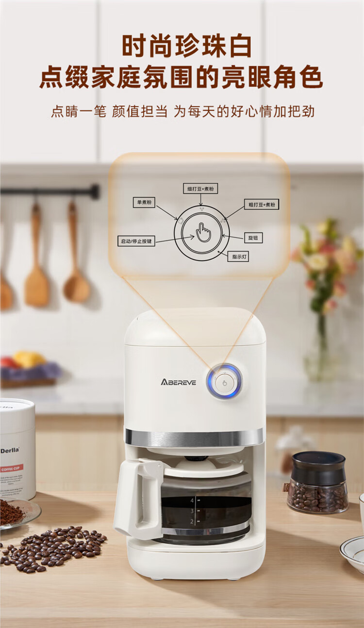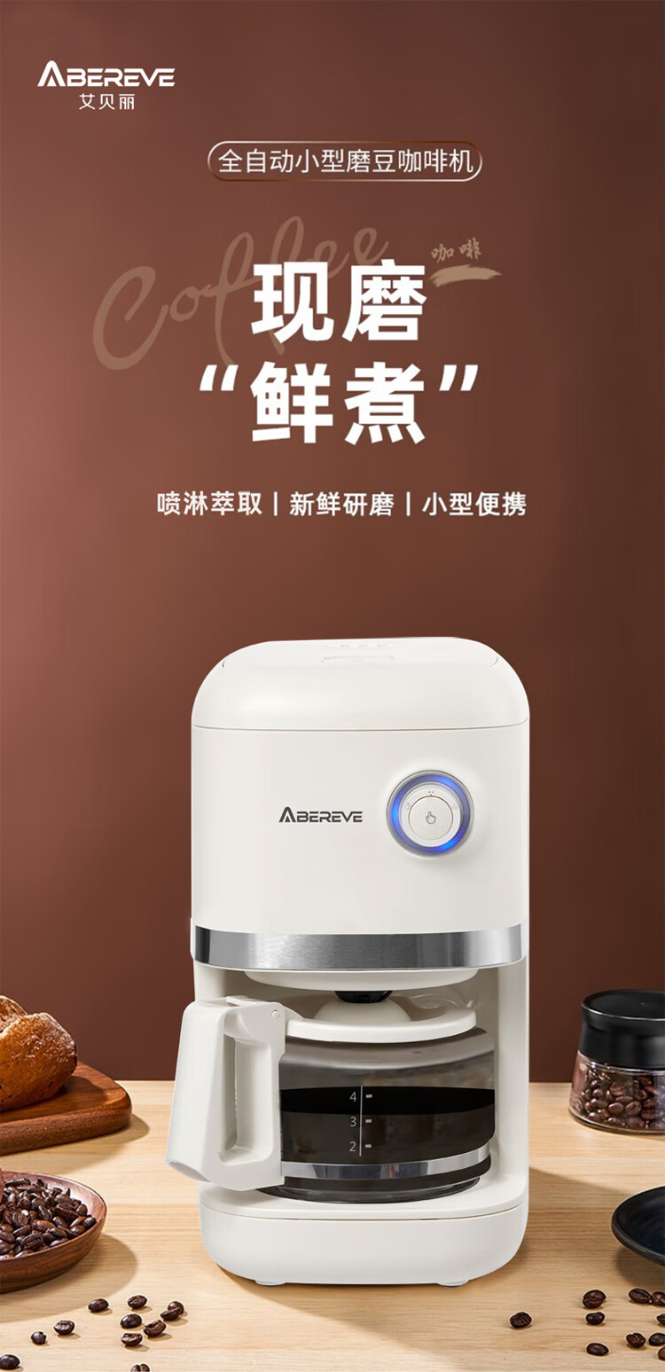 艾贝丽全自动美式磨豆咖啡机 1.5L ABL-KF498M 6972149934413 偏远另加运费