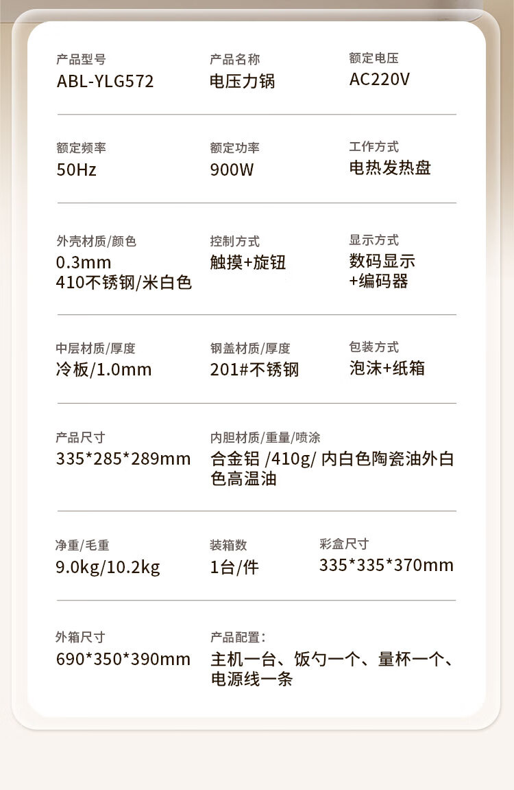 艾贝丽电压力锅 5L ABL-YLG572 6972149934567 偏远另加运费