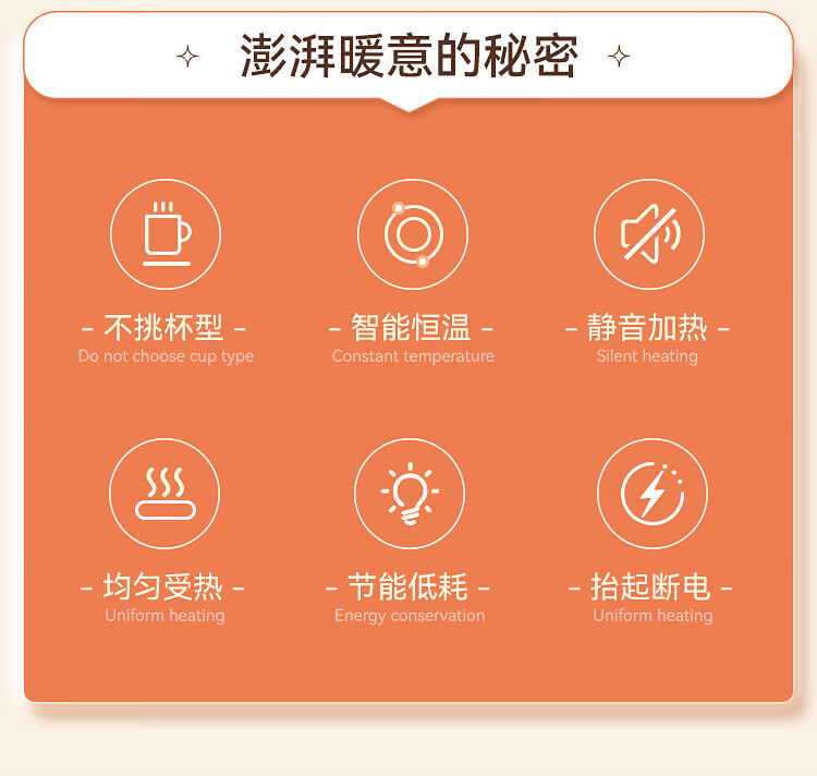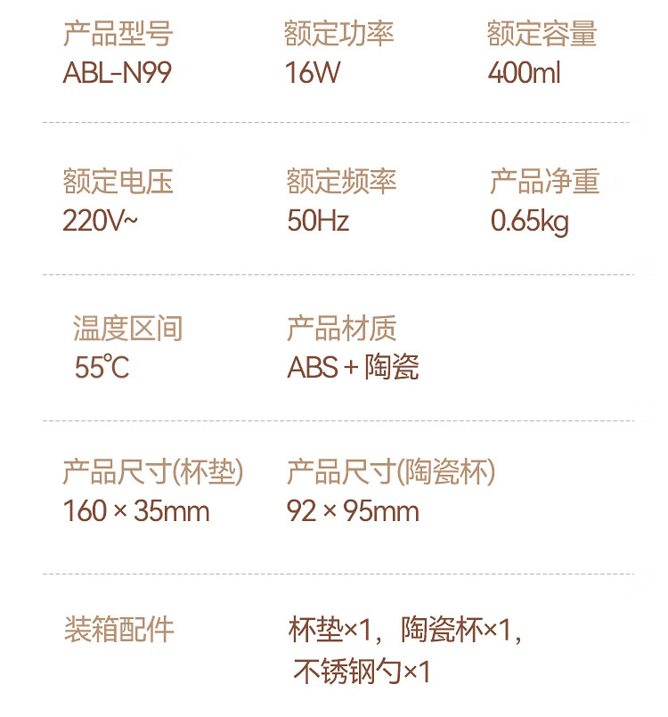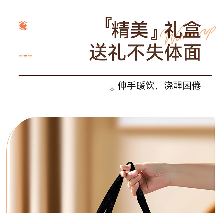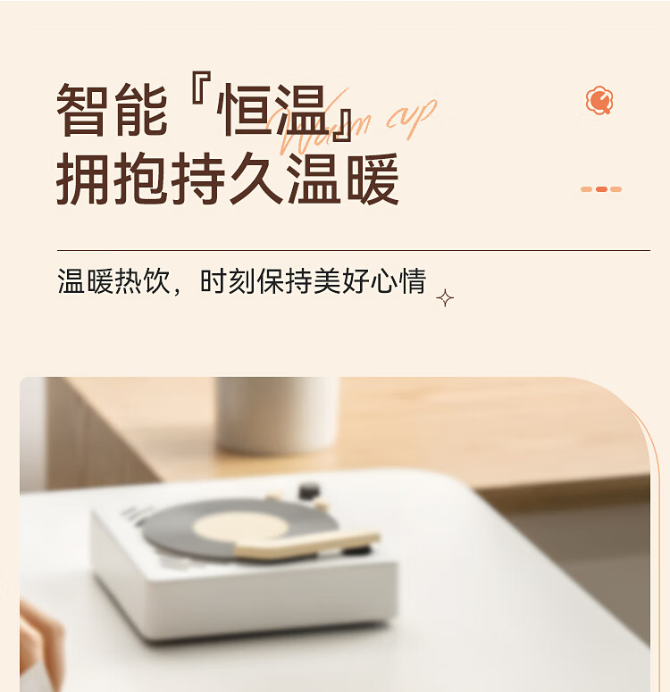 \"精美礼盒套装,送礼更体面 16W超低能耗 轻便迷你,美观实用 55度全天候长效保温,提杯断电 轻音加热,百搭不挑杯