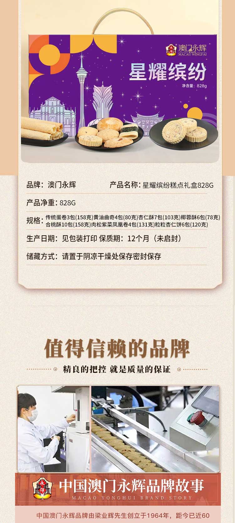 商品名称:澳门永辉星耀缤纷糕点礼盒828g 9583415000427 偏远另加运费