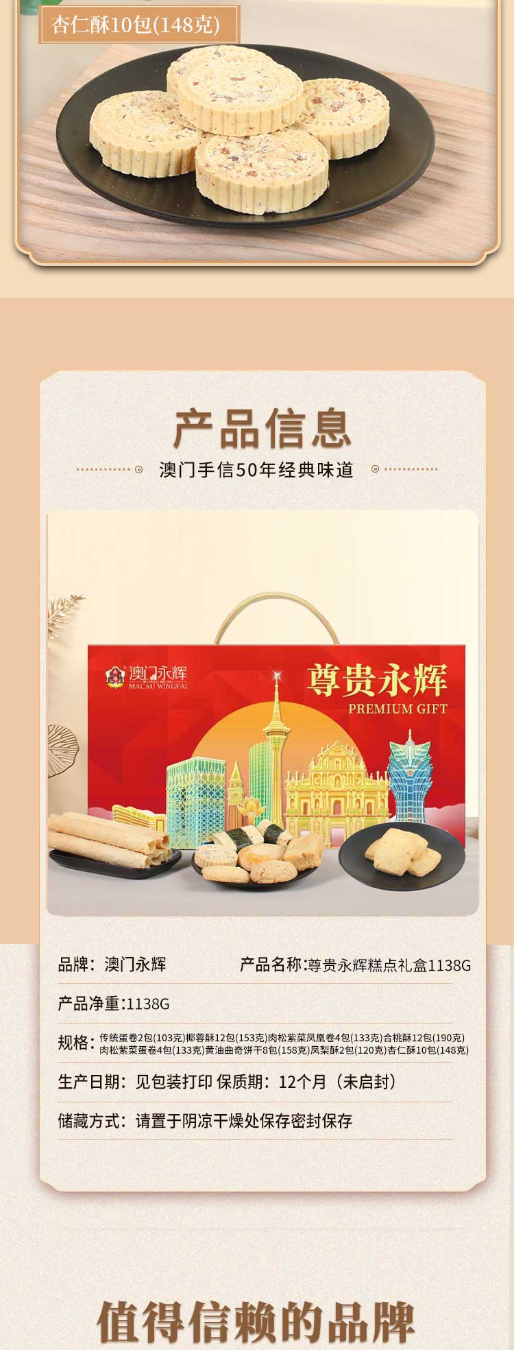 商品名称:澳门永辉尊贵永辉糕点礼盒1138g 9583415000458 偏远另加运费
