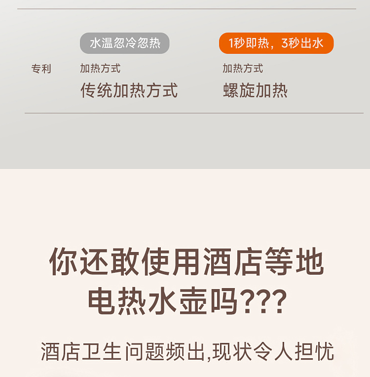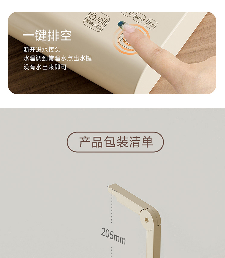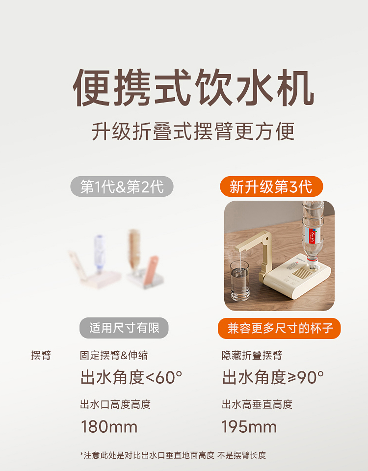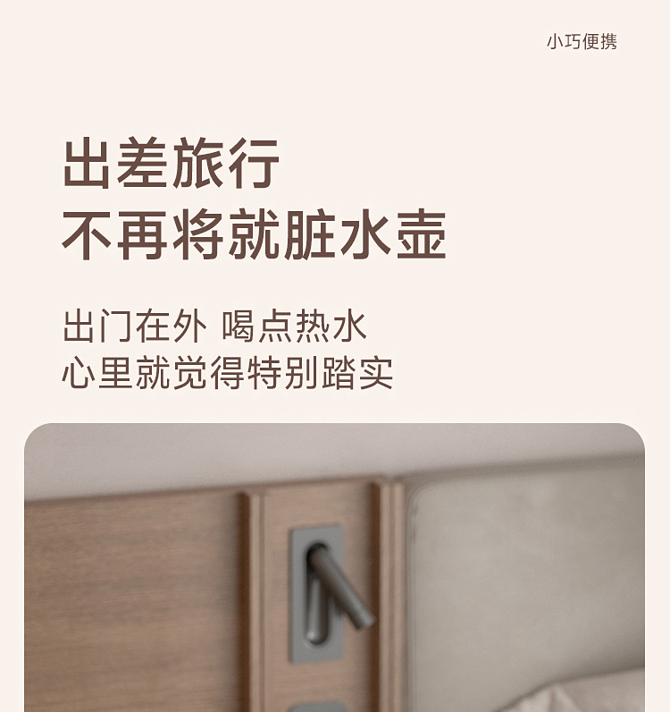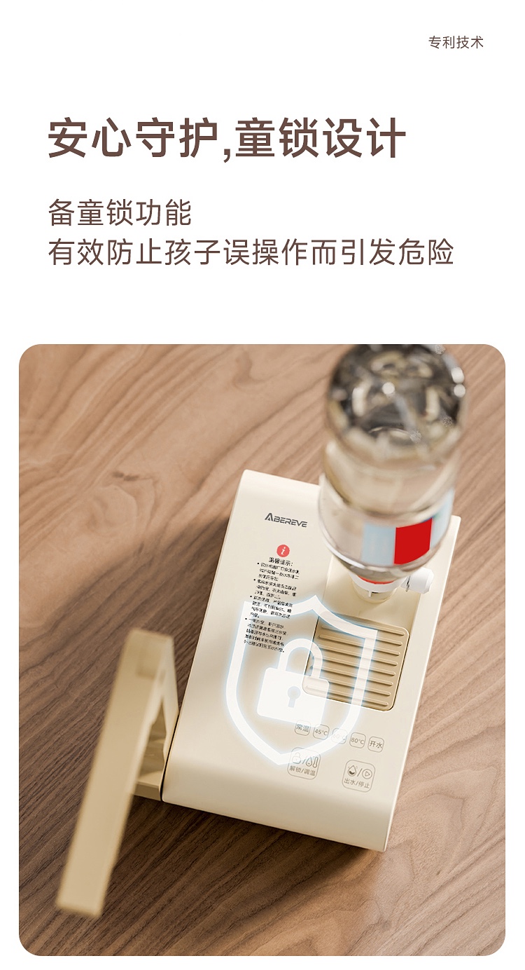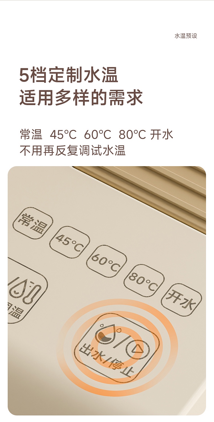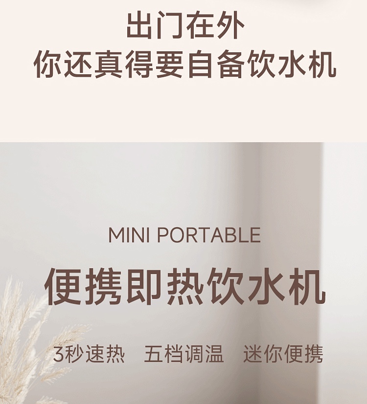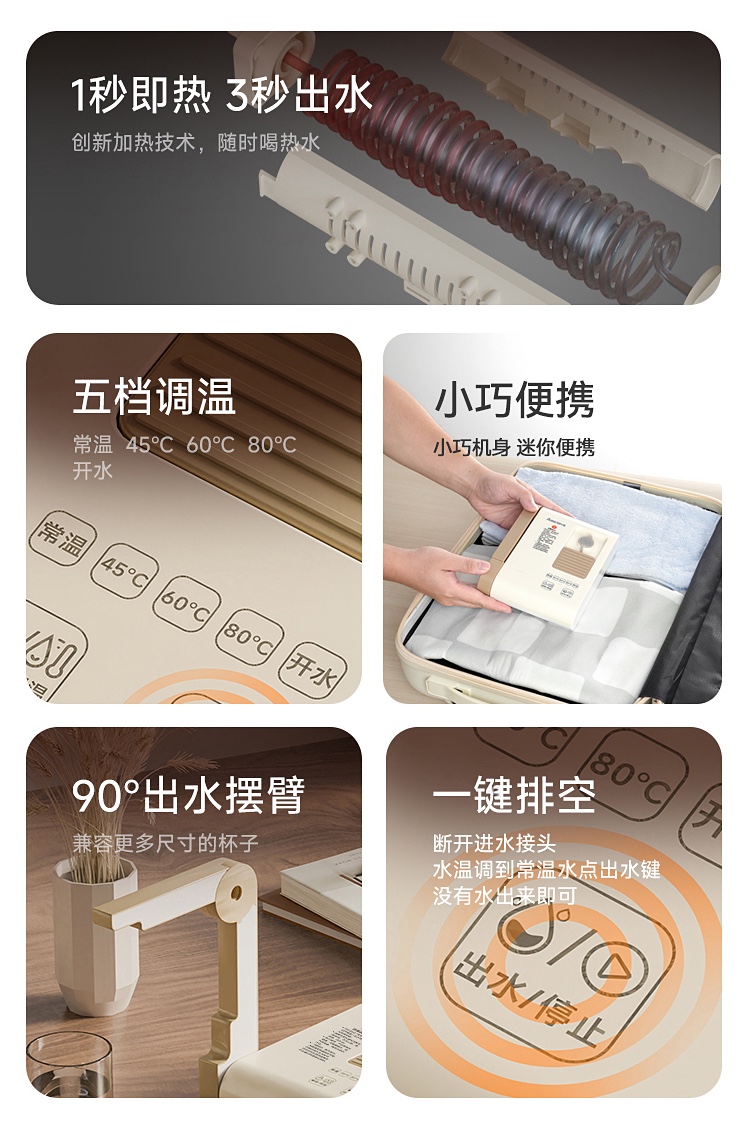 \"1s速热,3s出水,五档调温,小巧便携 350ml定量出水,按需可控 90°出水 ,适配多种水杯高度 童锁设计,安心守护