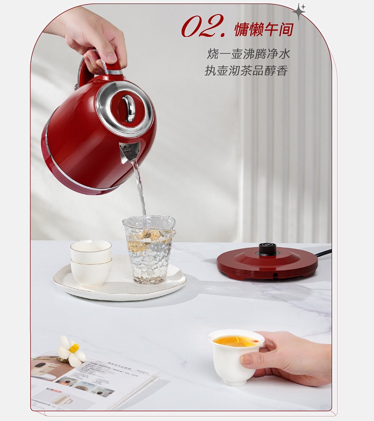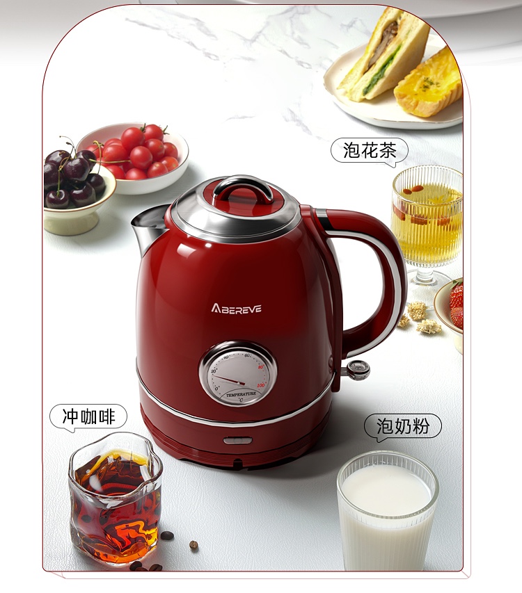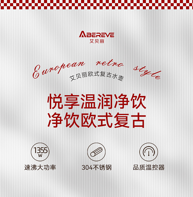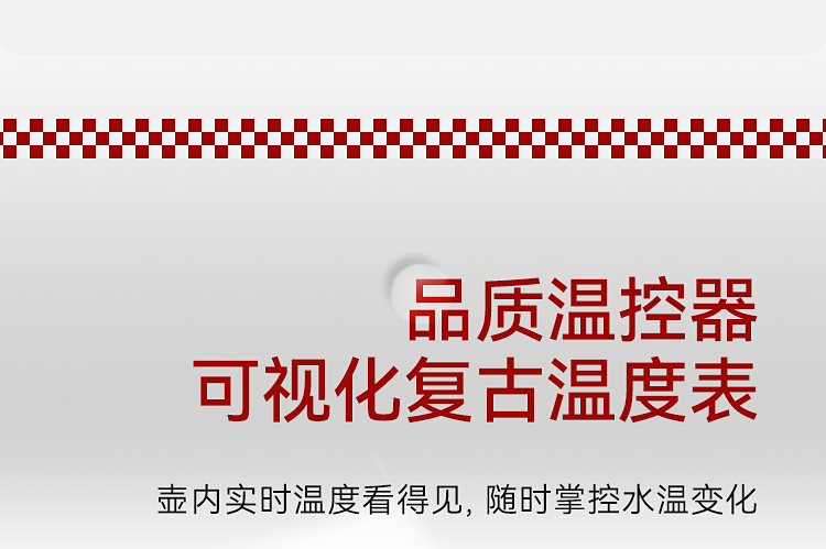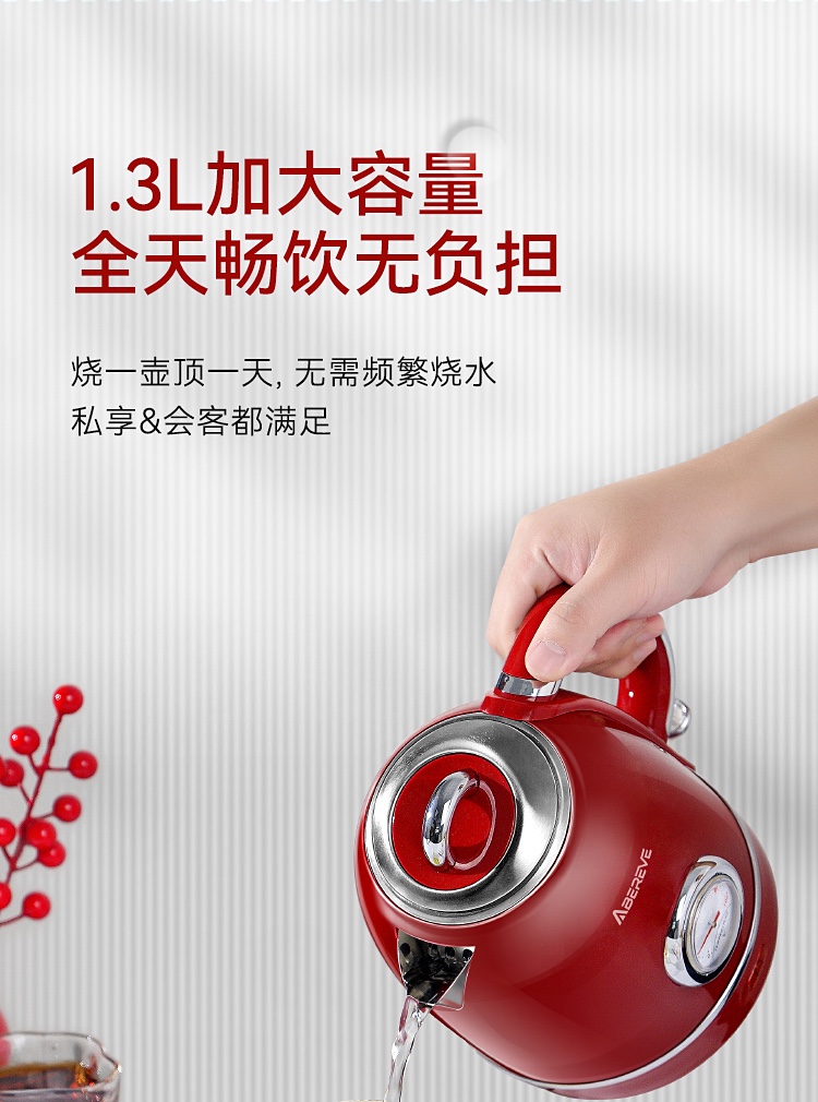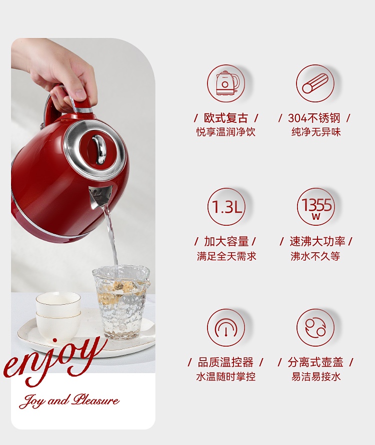 \"欧式复古,1355W速沸大功率 304不锈钢,品质温控器壶内实时温度看的见 1.3L大容量,满足喝水需求