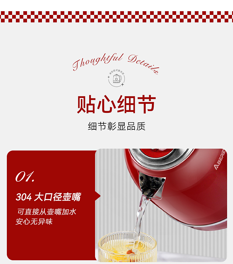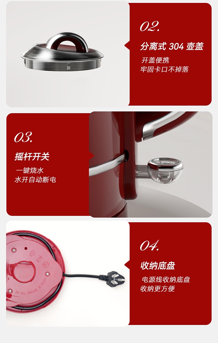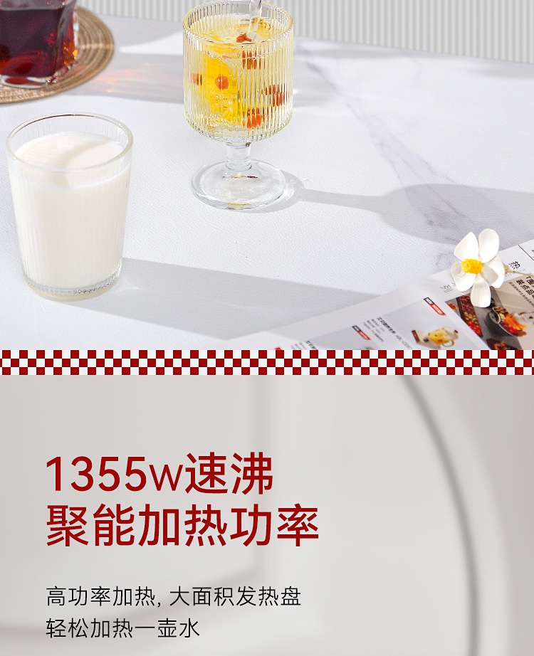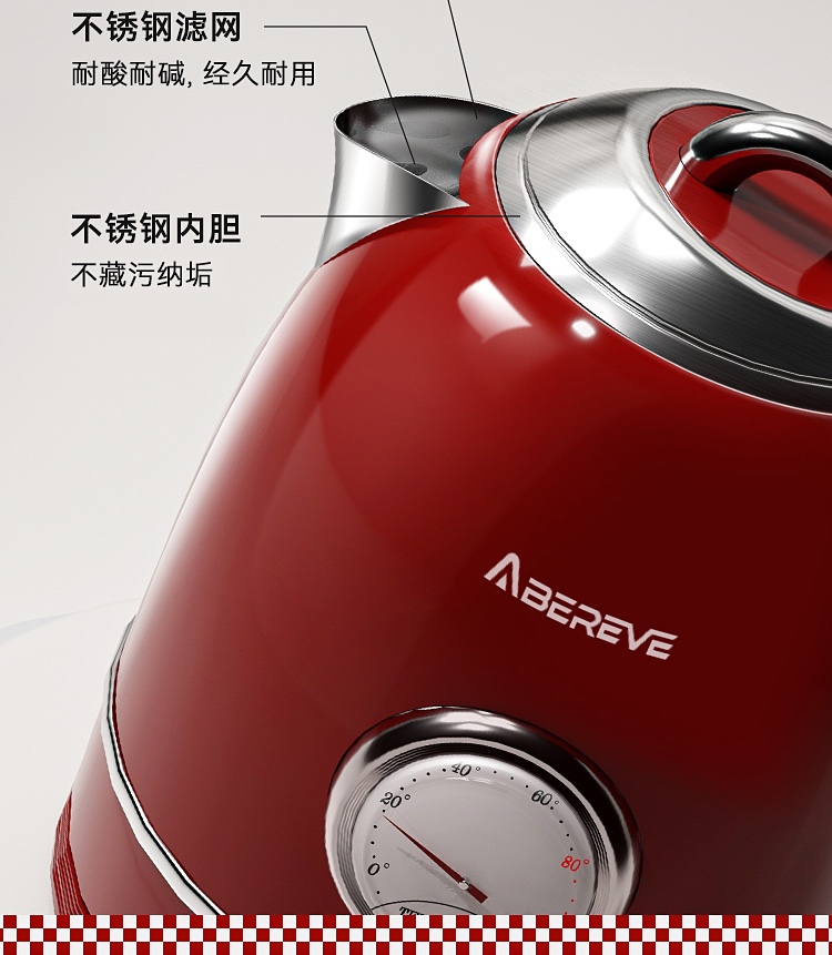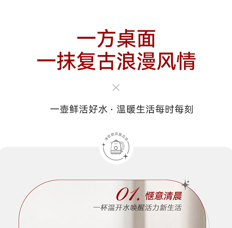 \"欧式复古,1355W速沸大功率 304不锈钢,品质温控器壶内实时温度看的见 1.3L大容量,满足喝水需求