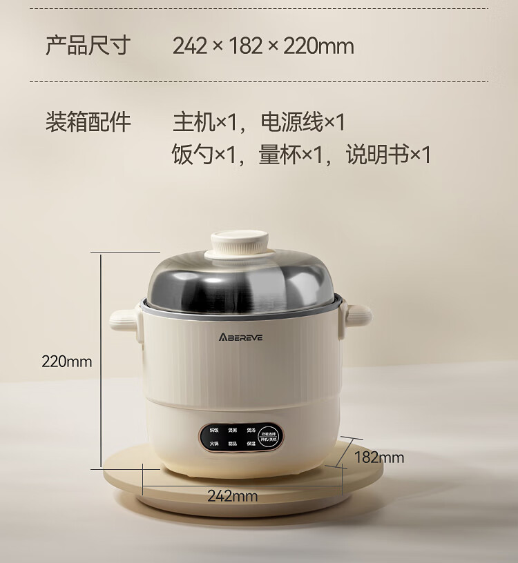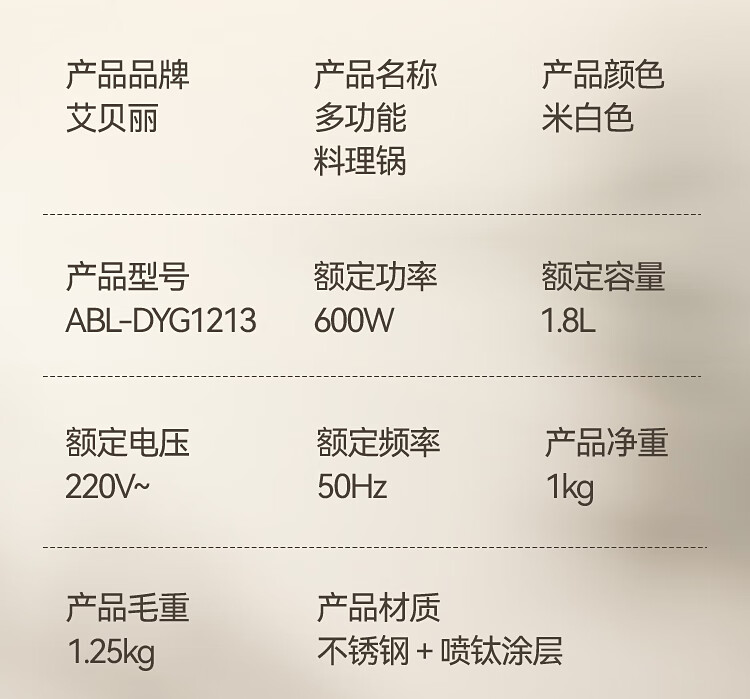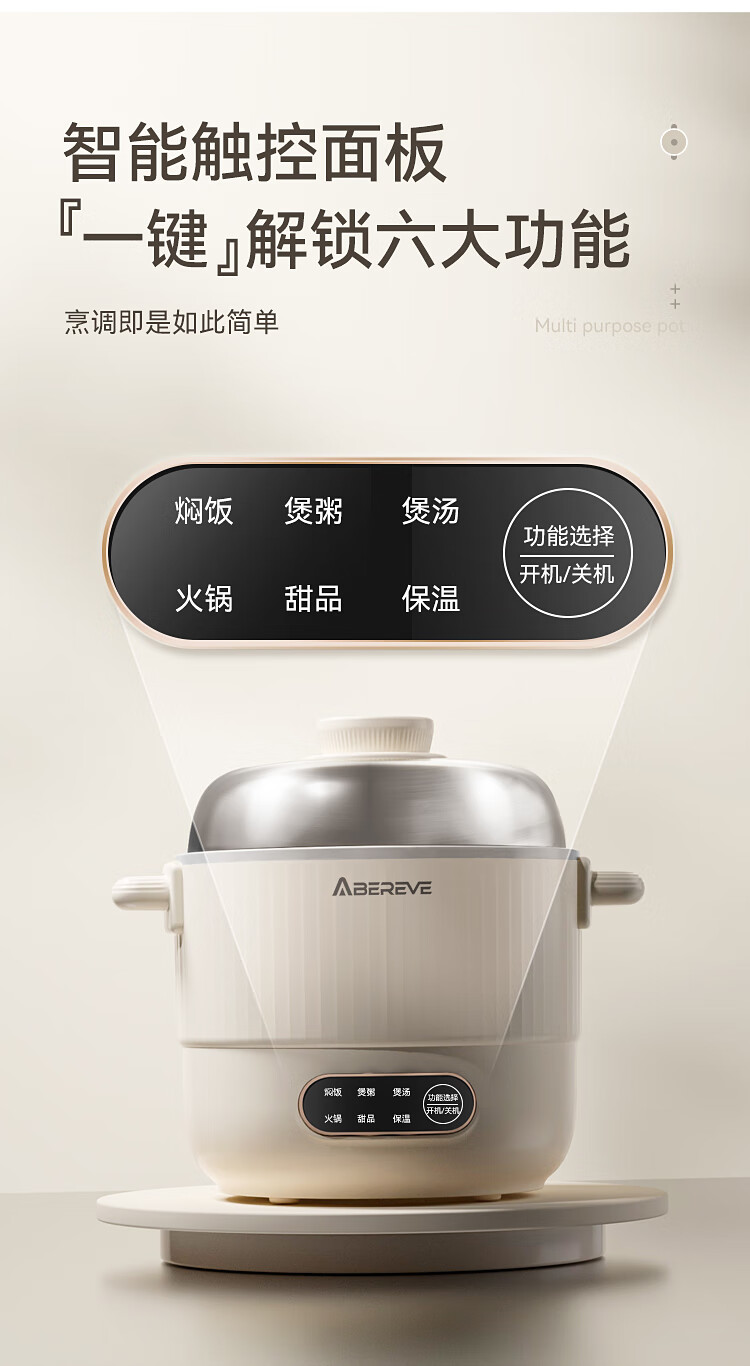 商品名称:艾贝丽多功能锅 1L ABL-DYG1213(蒸屉款) 6972149934581 偏远另加运费