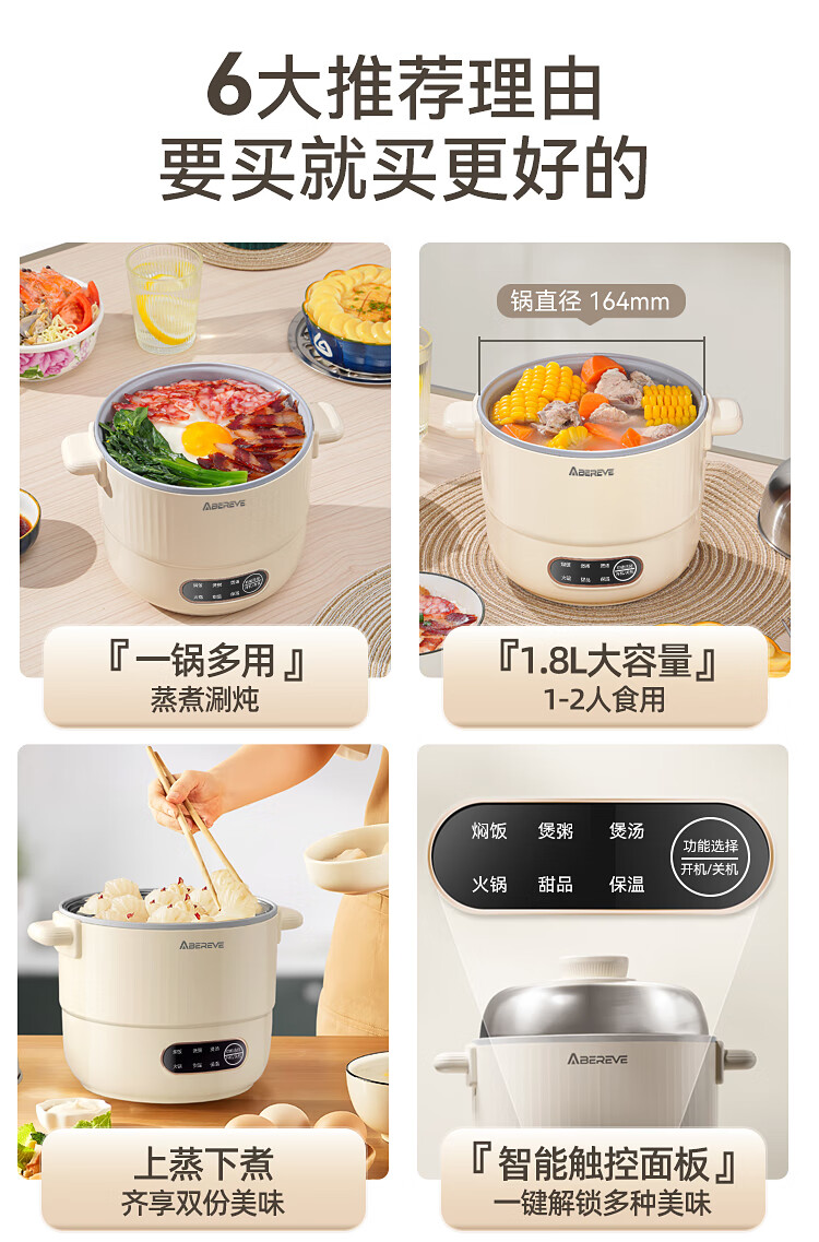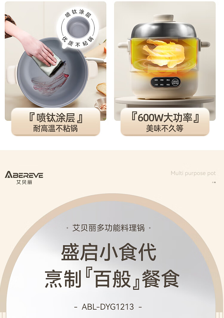 艾贝丽多功能锅 1L ABL-DYG1213(蒸屉款) 6972149934581 偏远另加运费