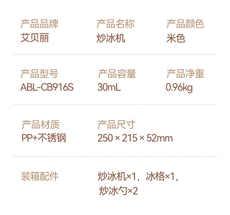 商品名称:艾贝丽炒冰机ABL-CB916S 6972149934710 偏远另加运费