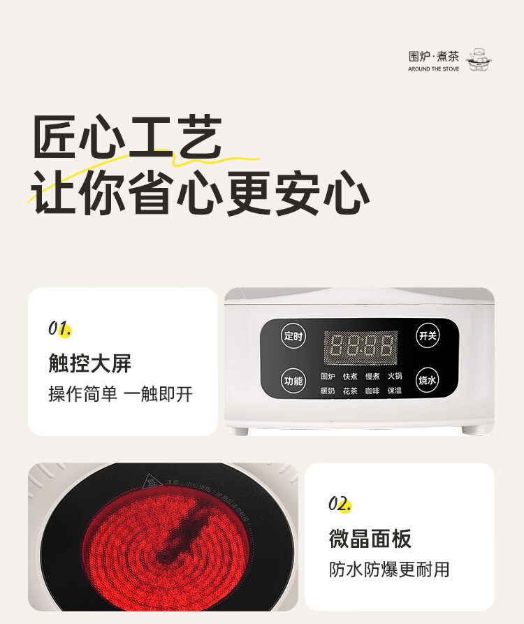 \"外表触感细腻,耐热抗摔防磕碰 四位触控数码屏清晰显示实时温度、火力 一键启动快速响应+八档火力精准适配