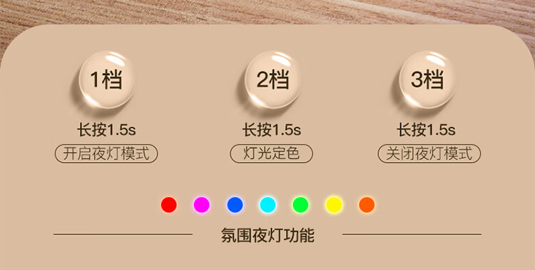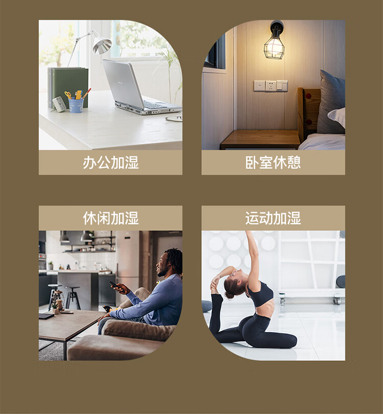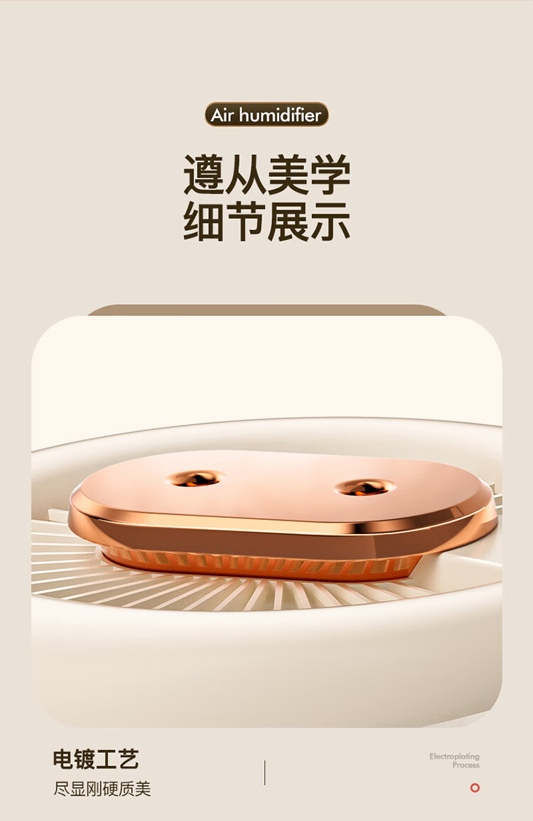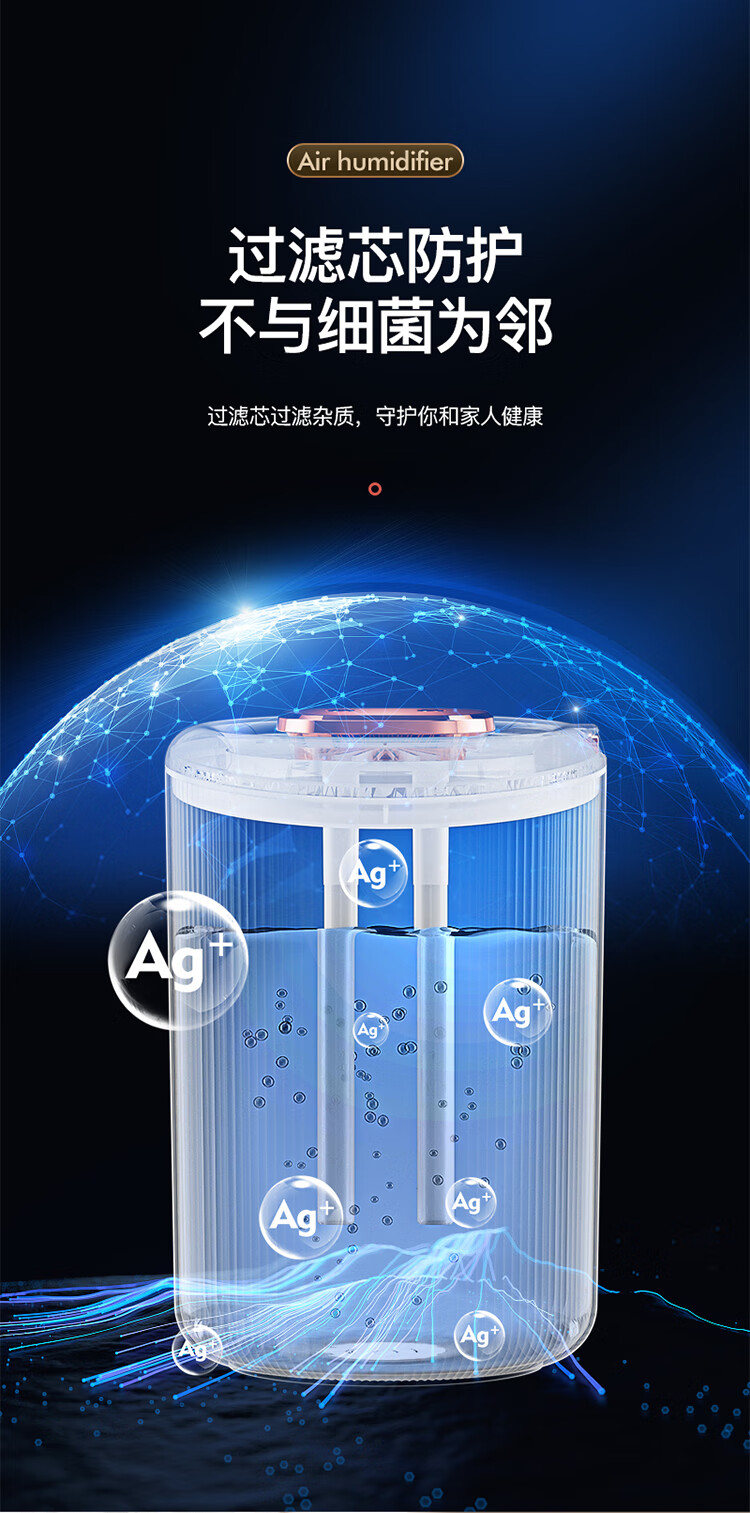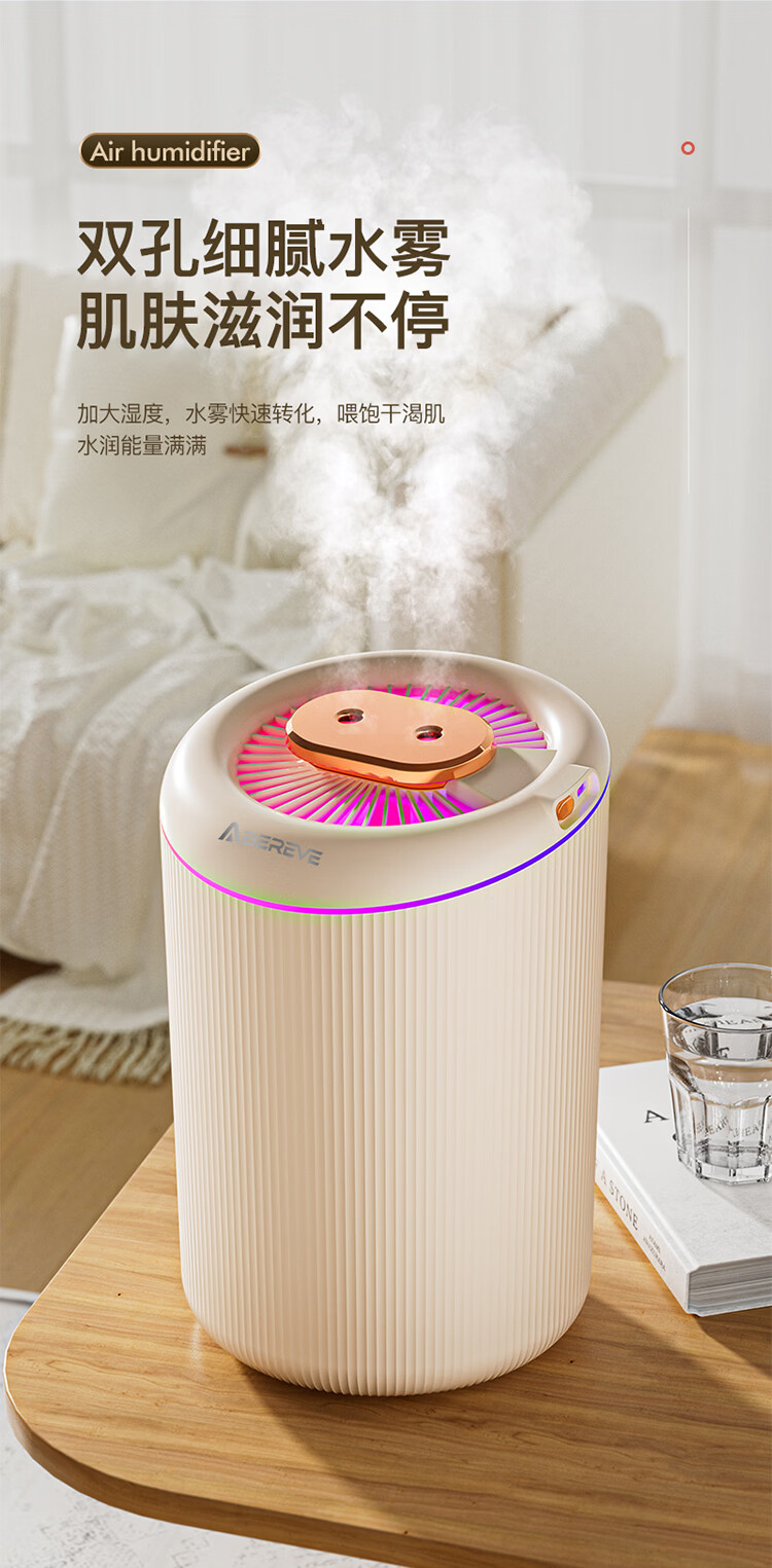 \"4.5L大容量水箱,双控喷雾,细腻雾化,加湿不凝水 智能定时开关,三档模式调节,湿度随心调节 低分贝运行,立体广角循环