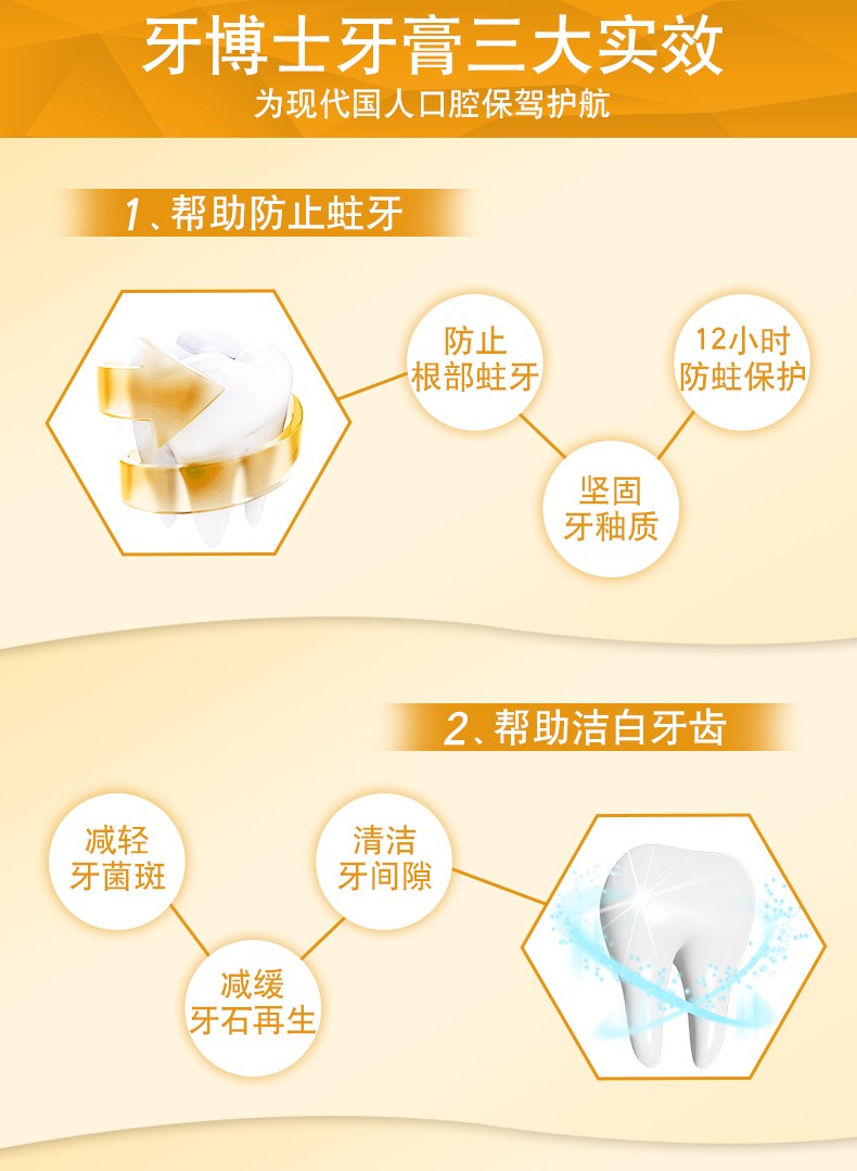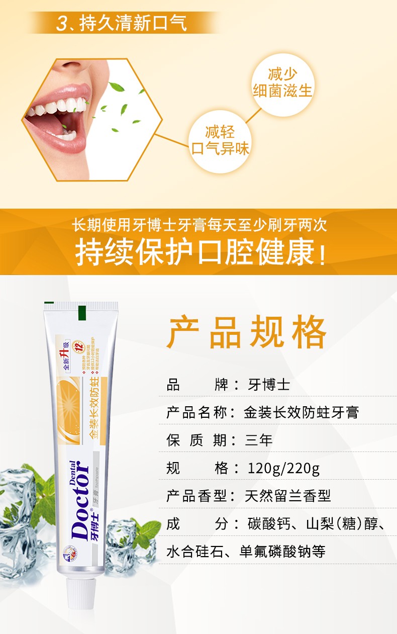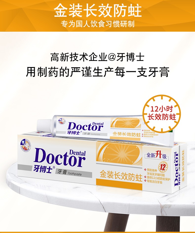 商品名称:牙博士金装长效防蛀牙膏家庭装220g 6924431491517 偏远地区另加运费