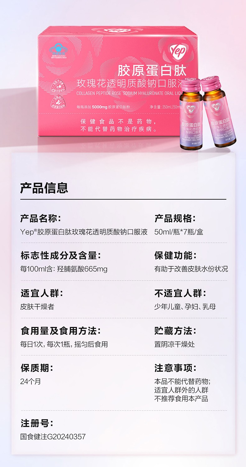汤臣倍健胶原蛋白肽玫瑰花透明质酸钠口服液(7瓶装)6930159591842 偏远另加运费