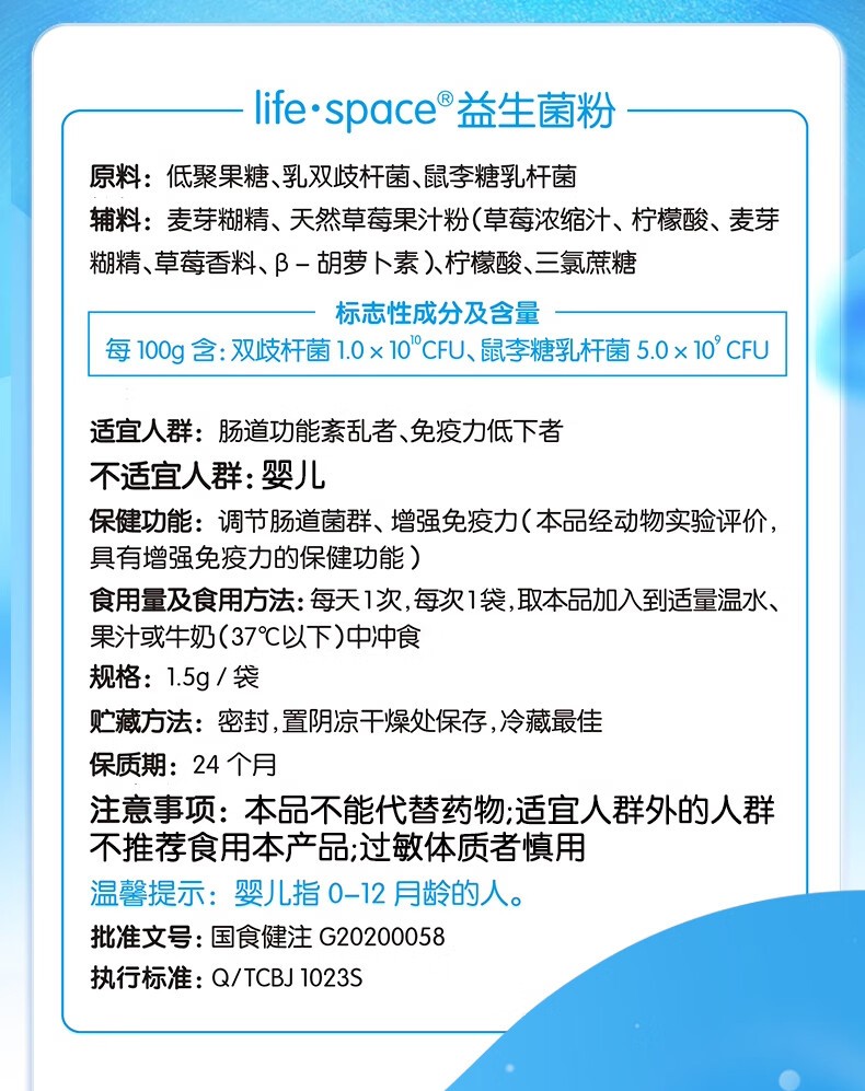 商品名称:益倍适 life.space益生菌粉(48袋)礼盒装 6940863618858 偏远另加运费