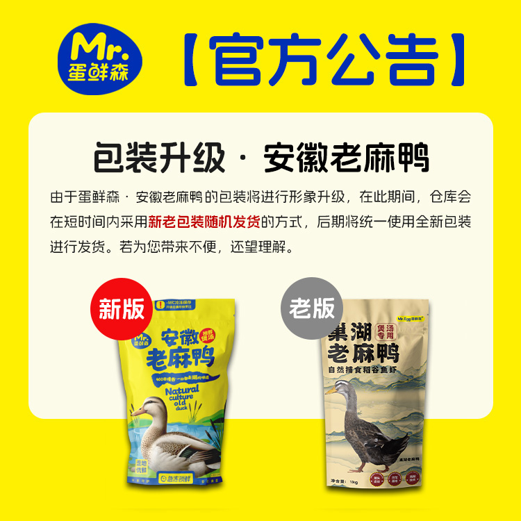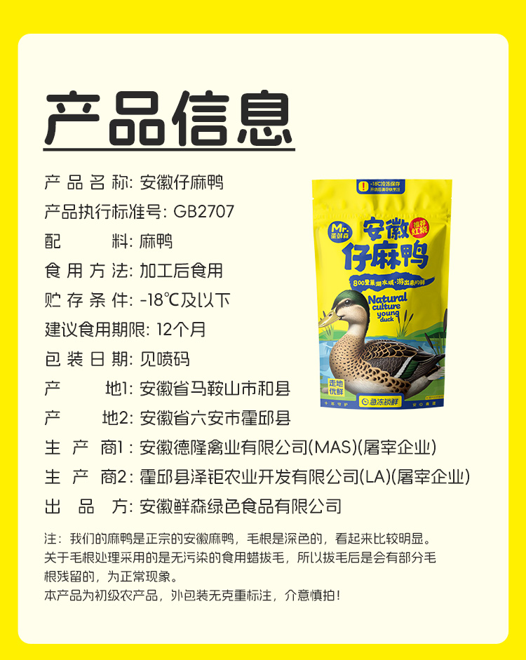 商品名称:蛋鲜森 仔麻鸭 1000g±50g/只