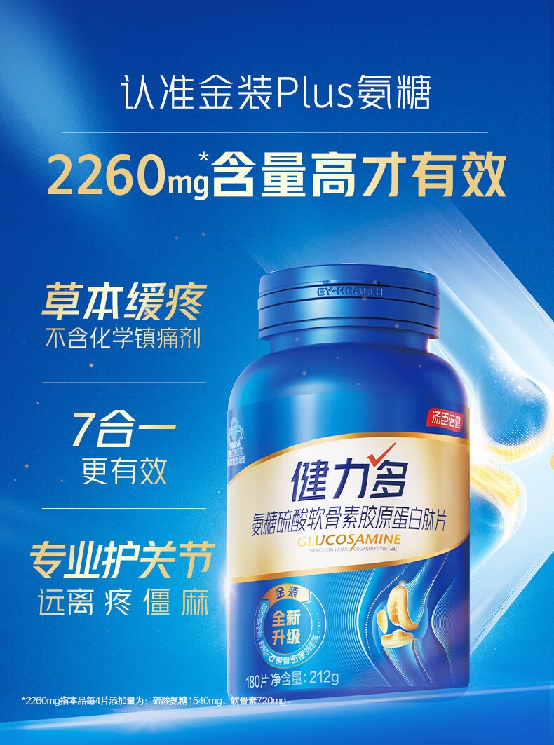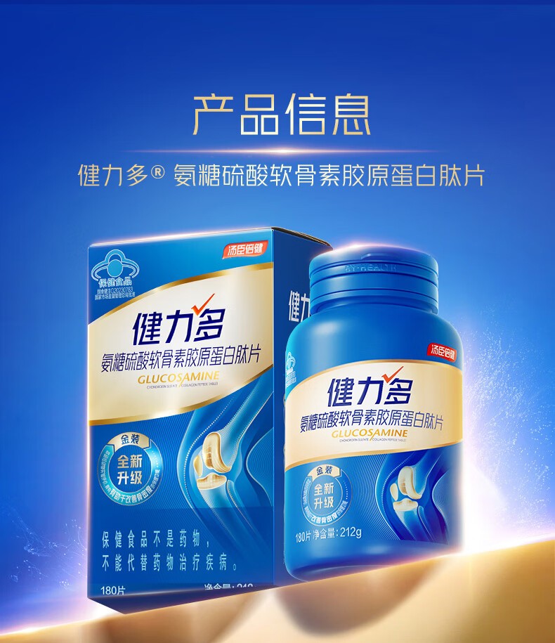 商品名称:健力多氨糖硫酸软骨素胶原蛋白肽片彩盒装(180片) 6976819620026 偏远另加运费