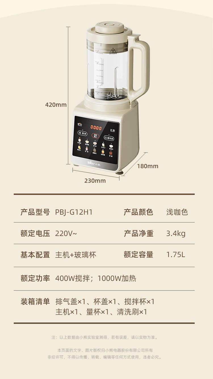 商品名称:【集采7】小熊破壁机PBJ-G12H1
