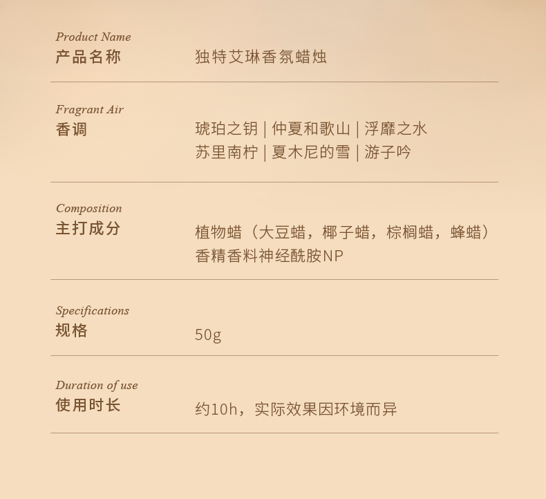 商品名称:独特艾琳夏木尼的雪香氛蜡烛 50g 6975226613973 偏远地区另加运费