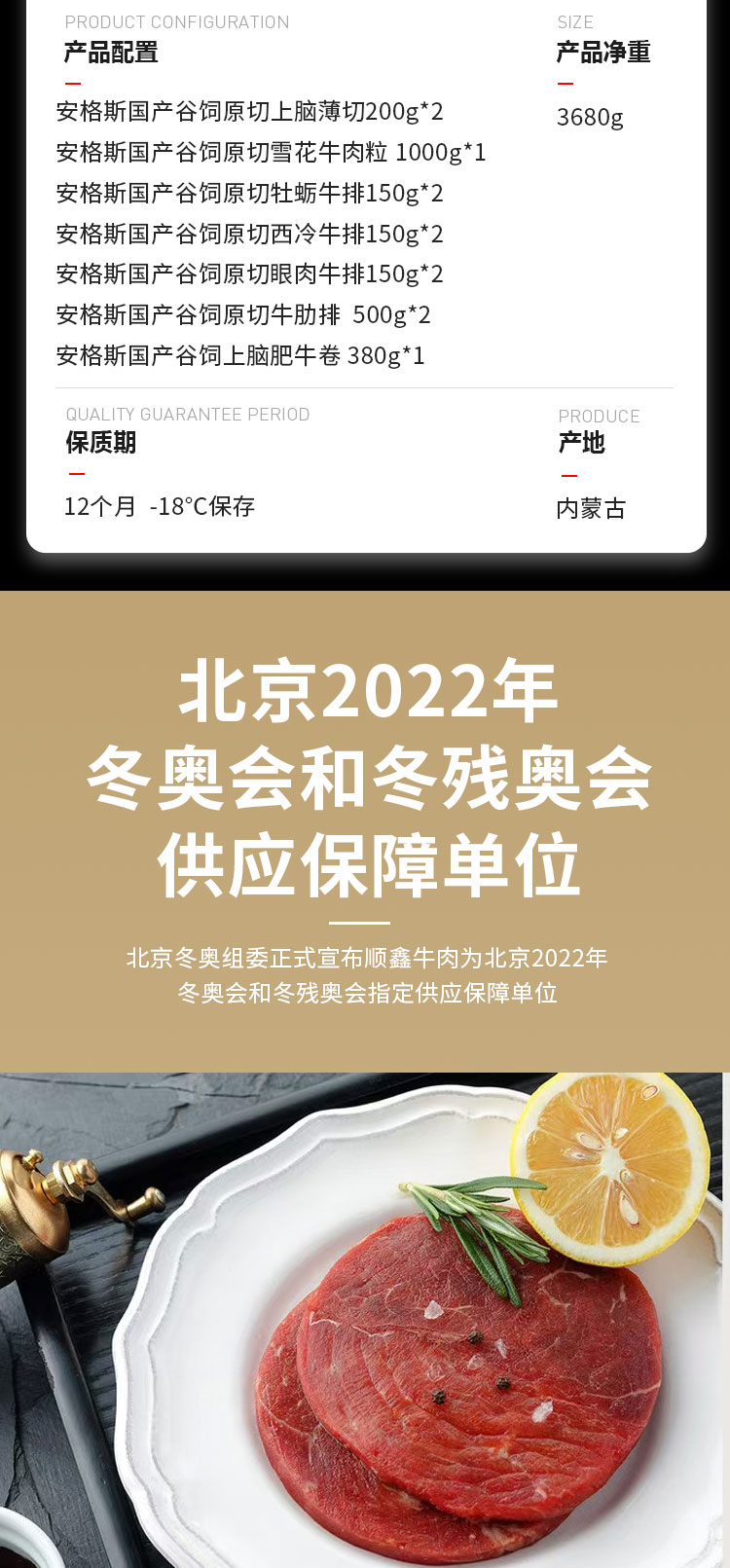 商品名称:顺鑫鑫源牛肉 礼盒团圆1088型 3680g 6970288083047