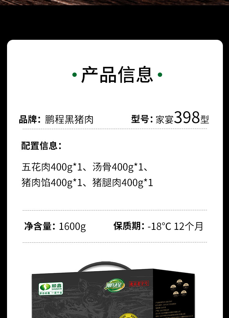 商品名称:鹏程黑猪肉家宴礼盒 1600g 6970893861351