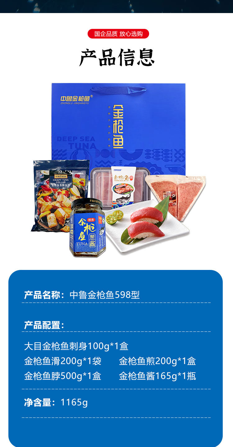 商品名称:中鲁金枪鱼金枪鱼礼盒598型 1165g 深海金枪鱼 金枪鱼刺身 国企品质