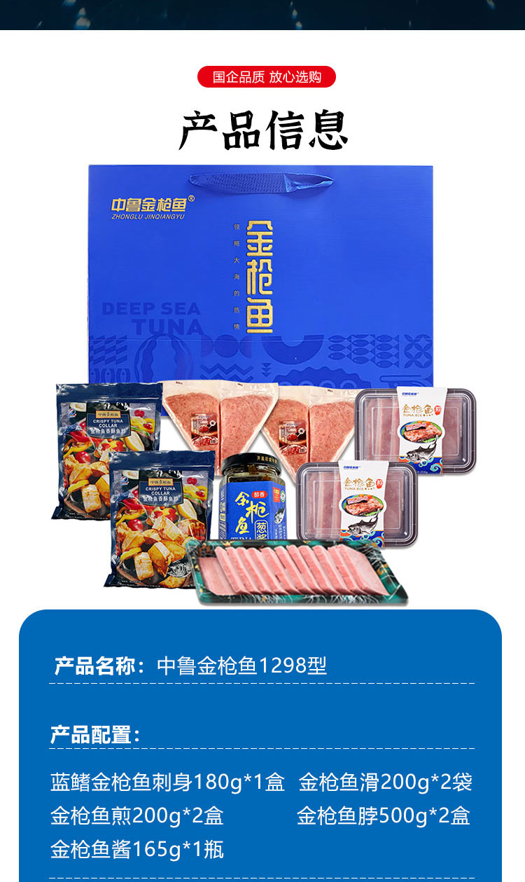 商品名称:中鲁金枪鱼金枪鱼礼盒1298型 2145g 深海金枪鱼 蓝鳍金枪鱼刺身 刺身之王