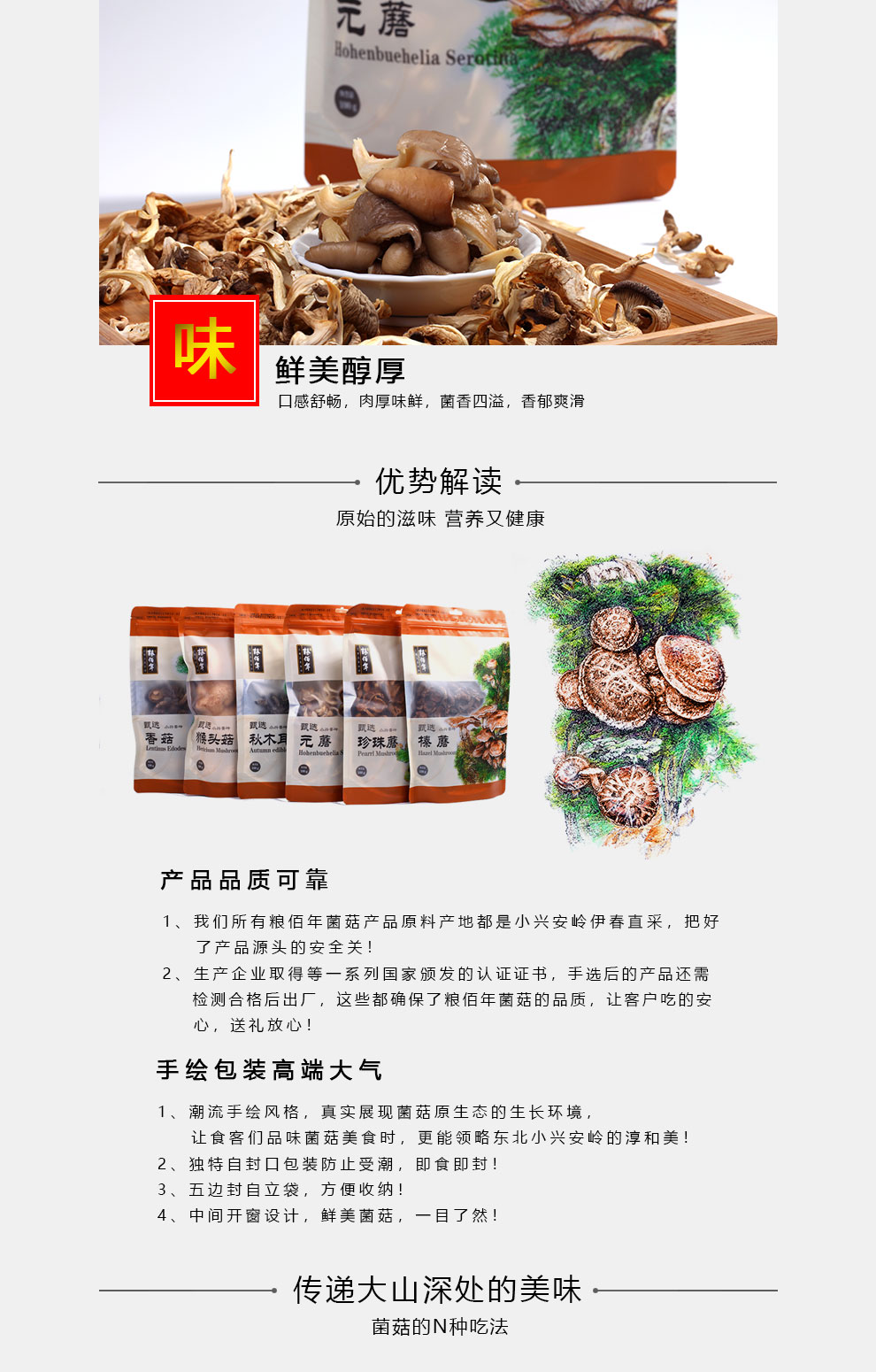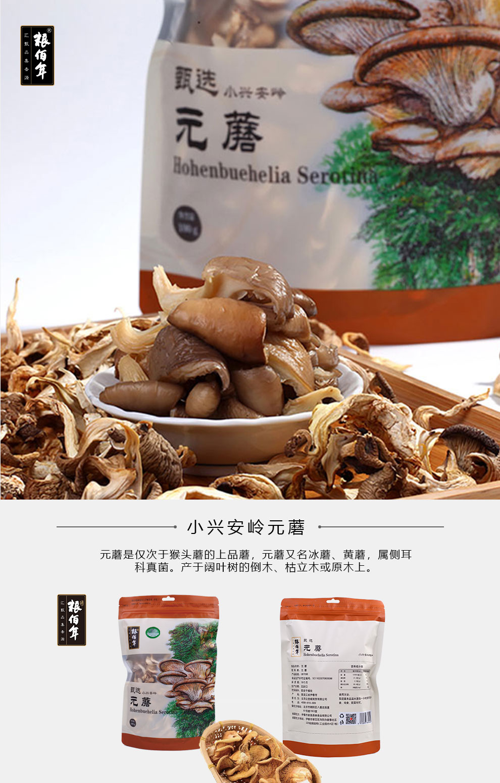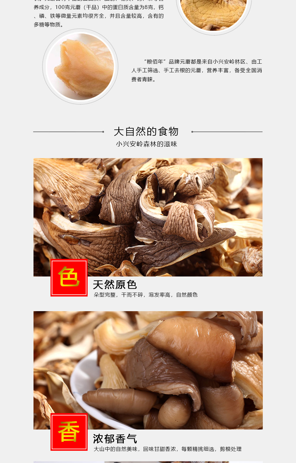 商品名称:粮佰年元蘑小鸡炖蘑菇 小兴安岭山珍 元蘑 100g 6970893860040