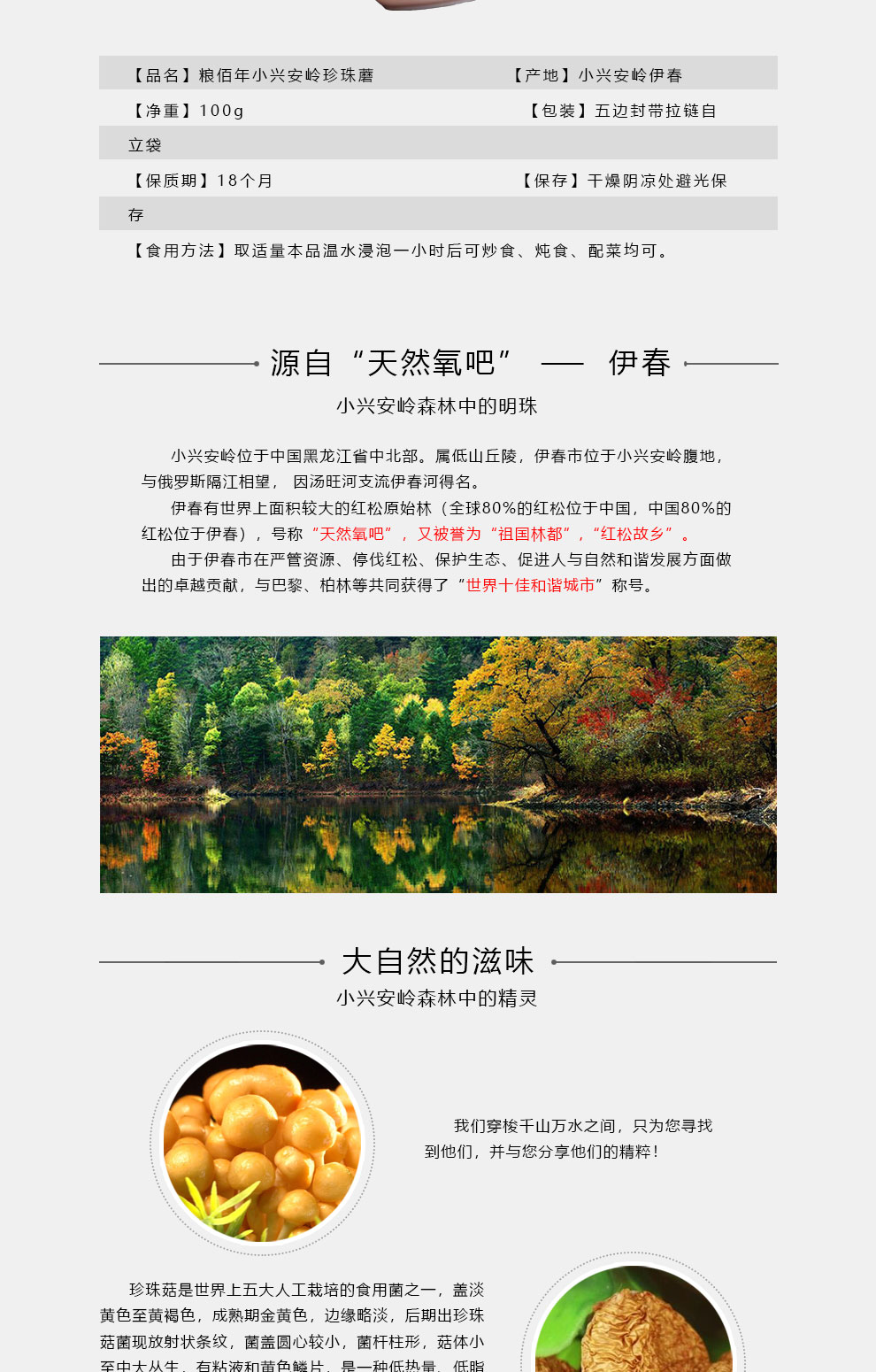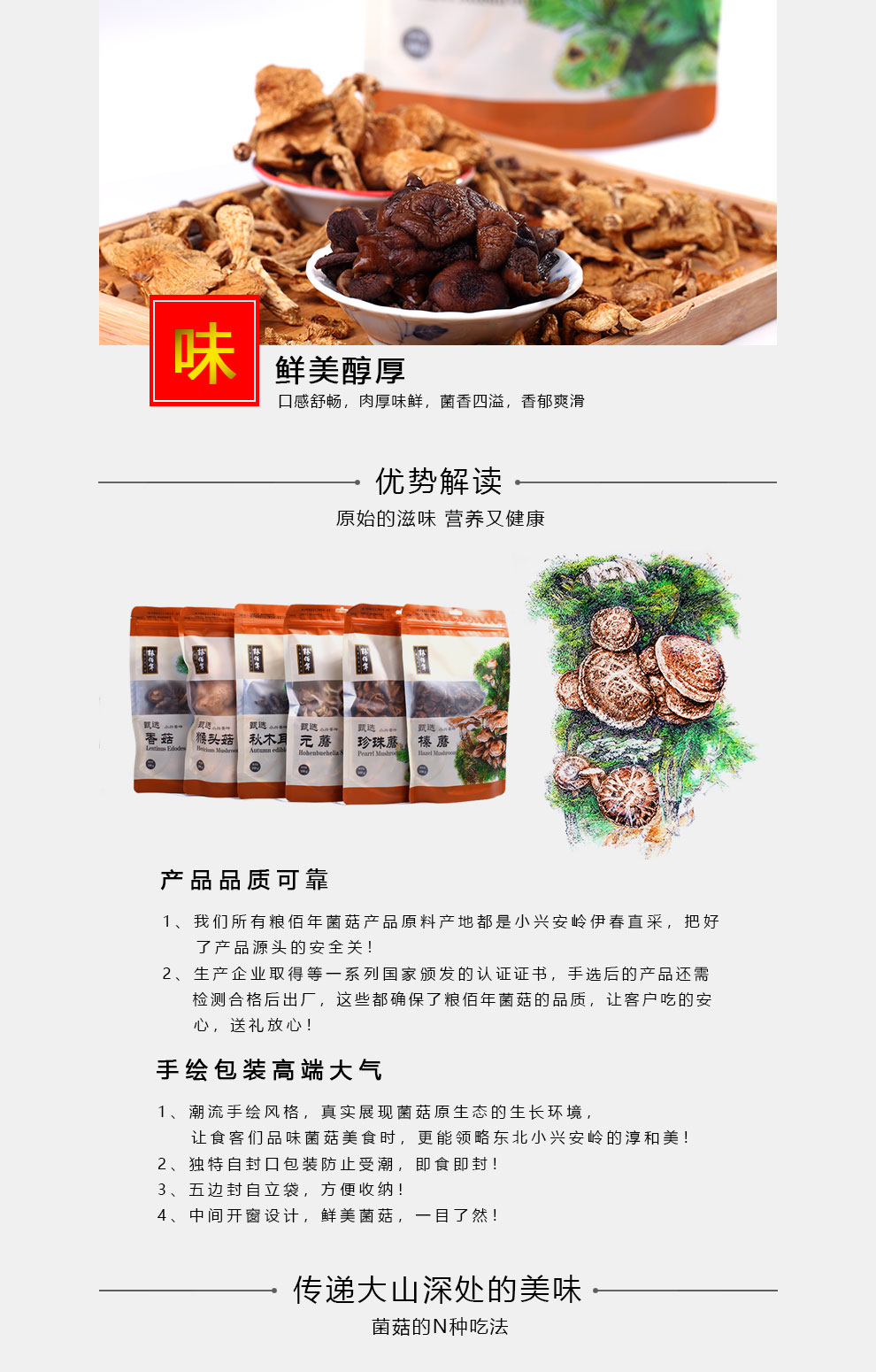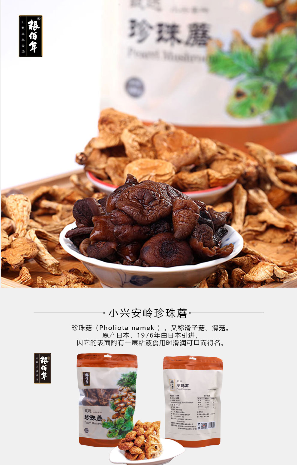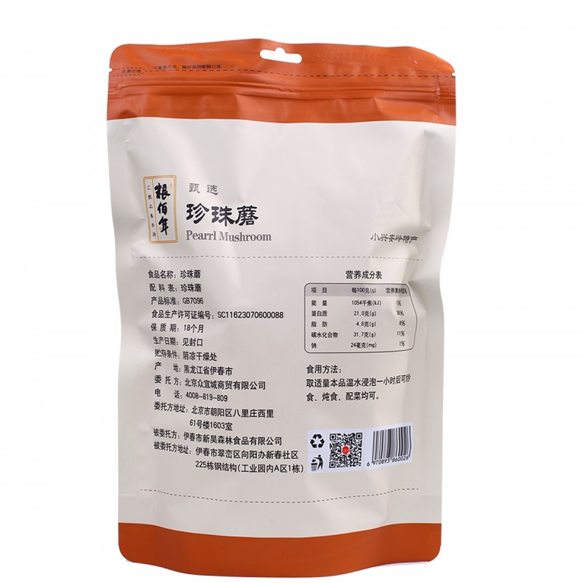 商品名称:粮佰年珍珠蘑小鸡炖蘑菇东北特产 小兴安岭珍珠菇 100g 6970893860026
