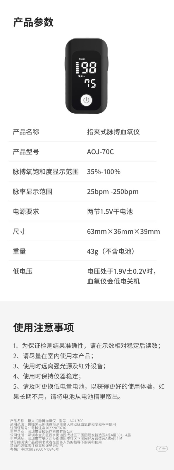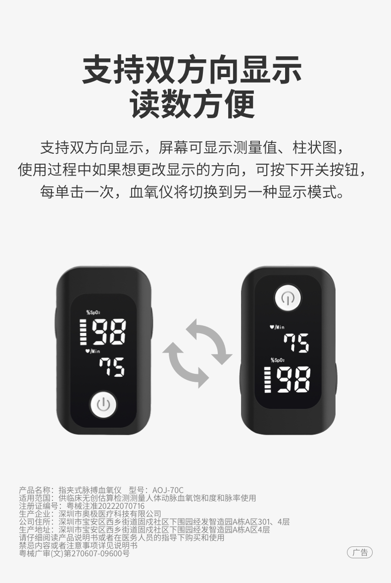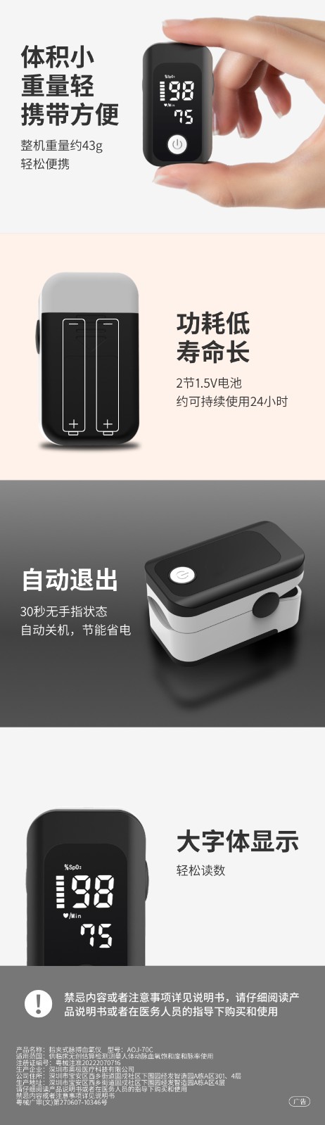 商品名称:乐心血氧仪 A0J-70C