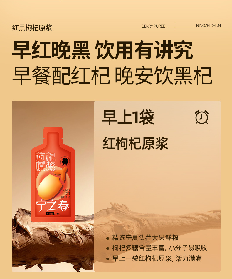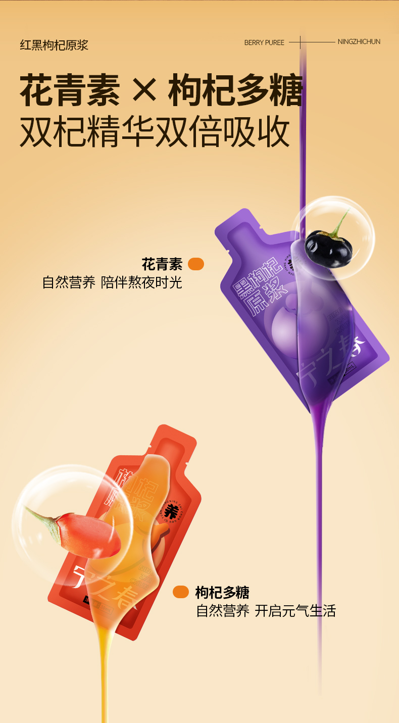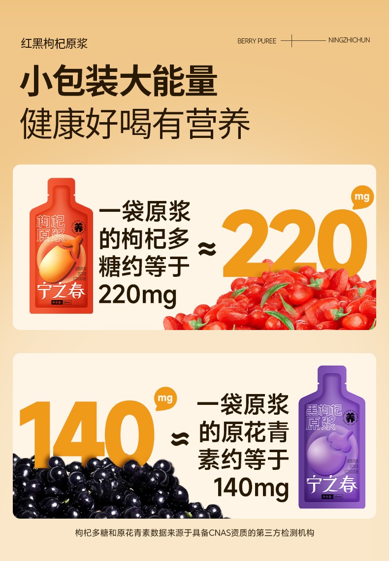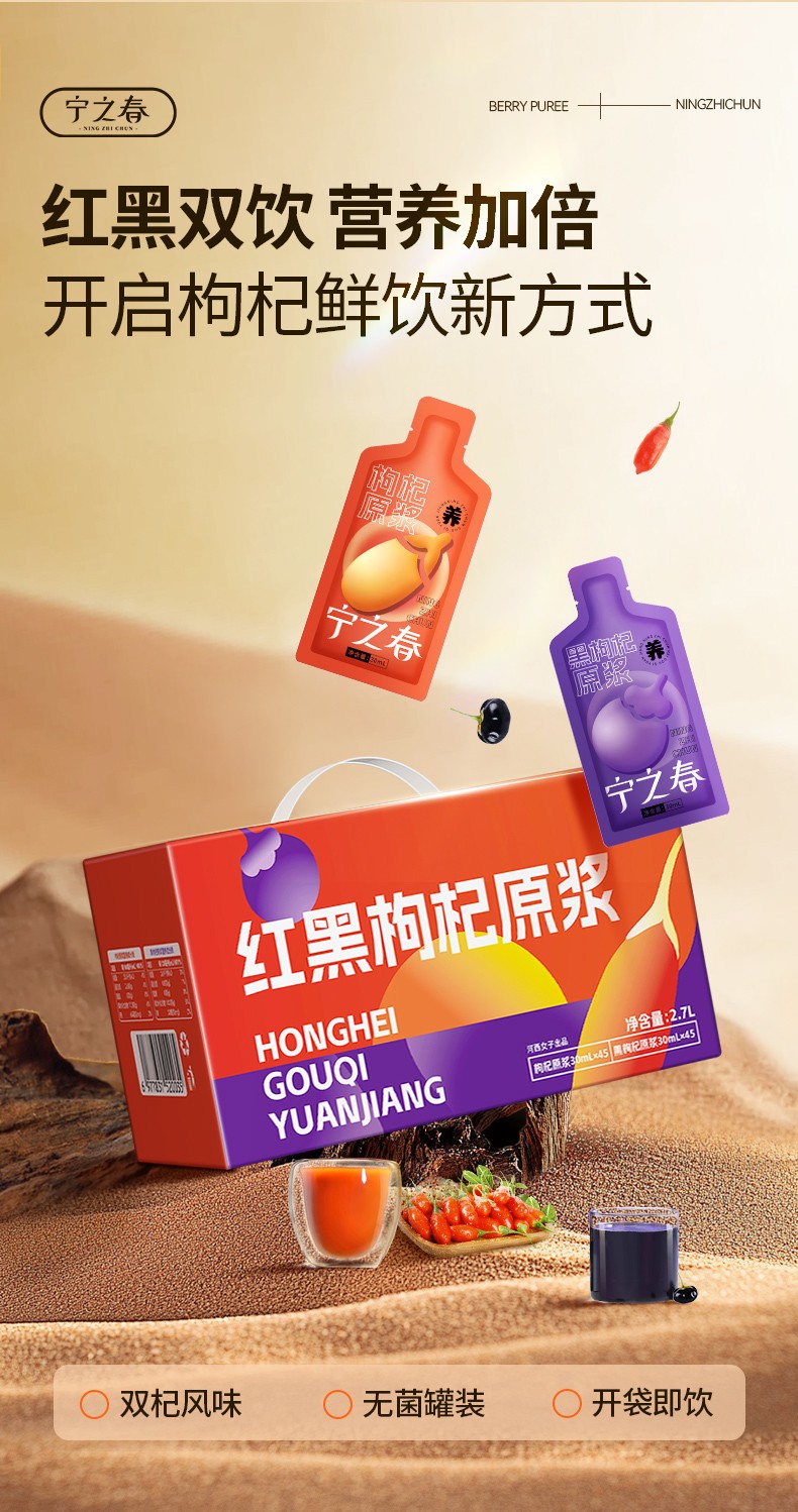 商品名称:宁之春红黑枸杞原浆(90袋)2700ml礼盒滋补宁夏中宁枸杞子鲜果不添加