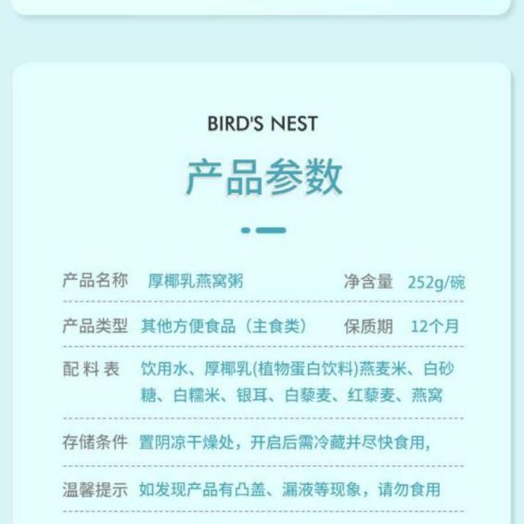 商品名称:唐域厚椰乳燕窝粥 252g*6碗 6978852670143 偏远另加运费